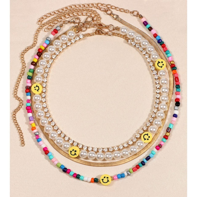 Introducing our stunning Acrylic Fruit Heart Beads Chain Necklaces! These beautiful necklaces are perfect for adding a touch of bohemian style to any outfit. Featuring multilayer beads in a variety of colors, including rainbow, pearl, and choker styles, these necklaces are sure to make you stand out from the crowd. Whether you're hitting the beach or the town, these necklaces are the perfect accessory for any occasion. So don't wait any longer, order your very own Acrylic Fruit Heart Beads Chain Necklace today!