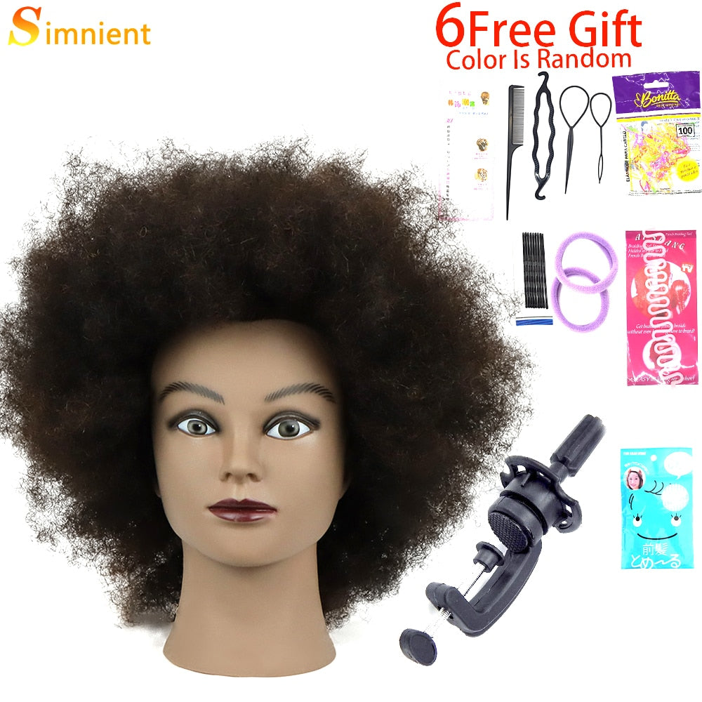 Afro Mannequin Heads With 100%Real Human Hair Hairdressing Training Head For Salon Cosmetology Manikin Dummy For Doll Heads Hair