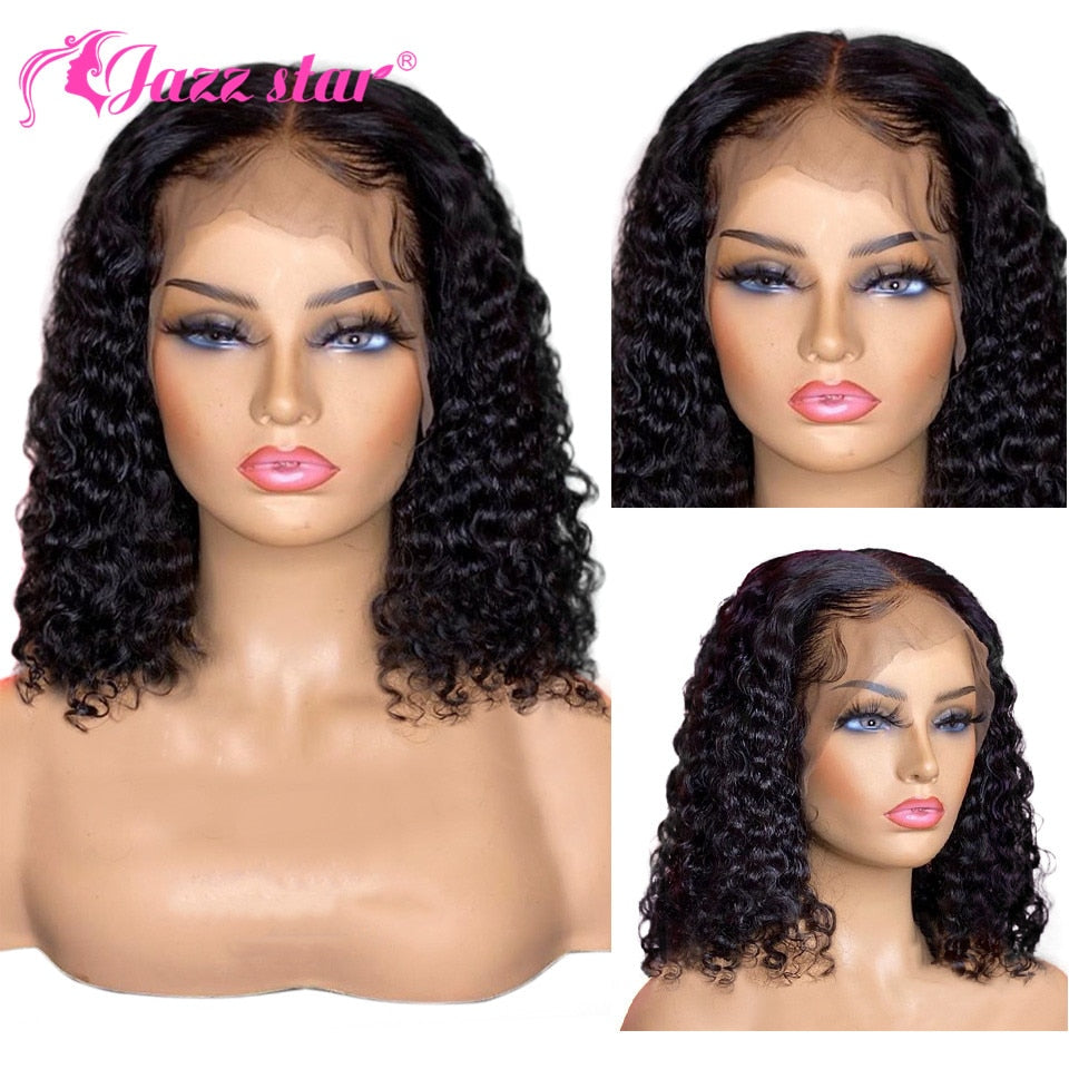 Brazilian Curly Human Hair Wig Bob Lace Front Wig 13x4 Lace Front Human Hair Wigs Pre plucked Non-Remy Perruque Cheveux Humain