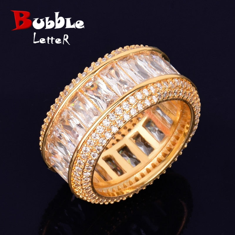 Bubble Letter Baguette Rings for Men Alianca De Casamento Ouro Real Gold Plated Hip Hop Jelwery