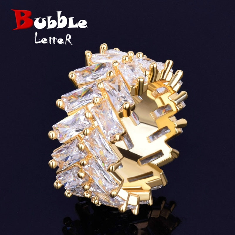 Bubble Letter Iced Out Rings for Men Baguette Couples Real Gold Plated Hip Hop Jewelry 2022 Trend