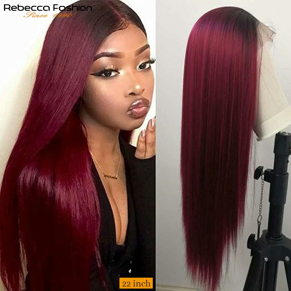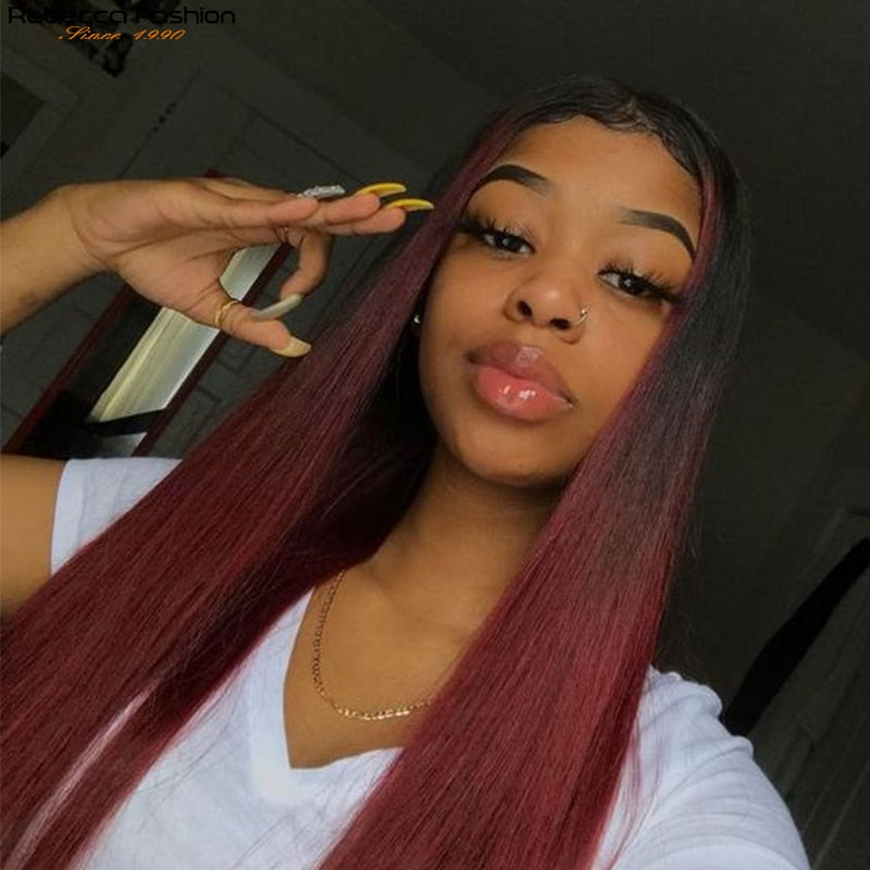 Burgundy HD Transparent Lace Front Human Hair Wigs Ombre 99J Straight Lace Frontal Wig For Women Pre Plucked 13x1x6 Lace Wig