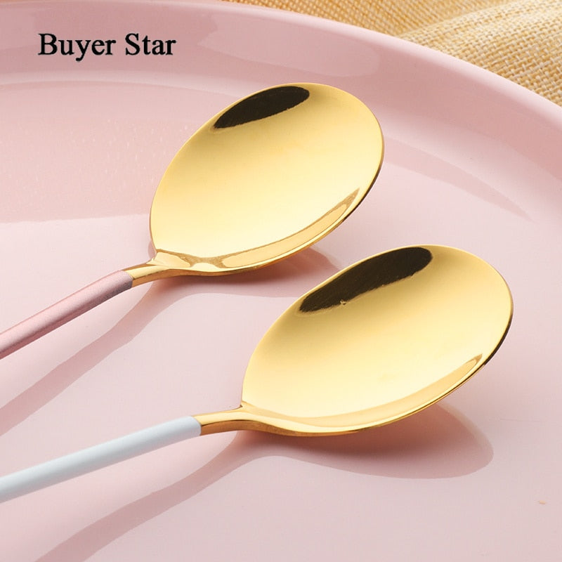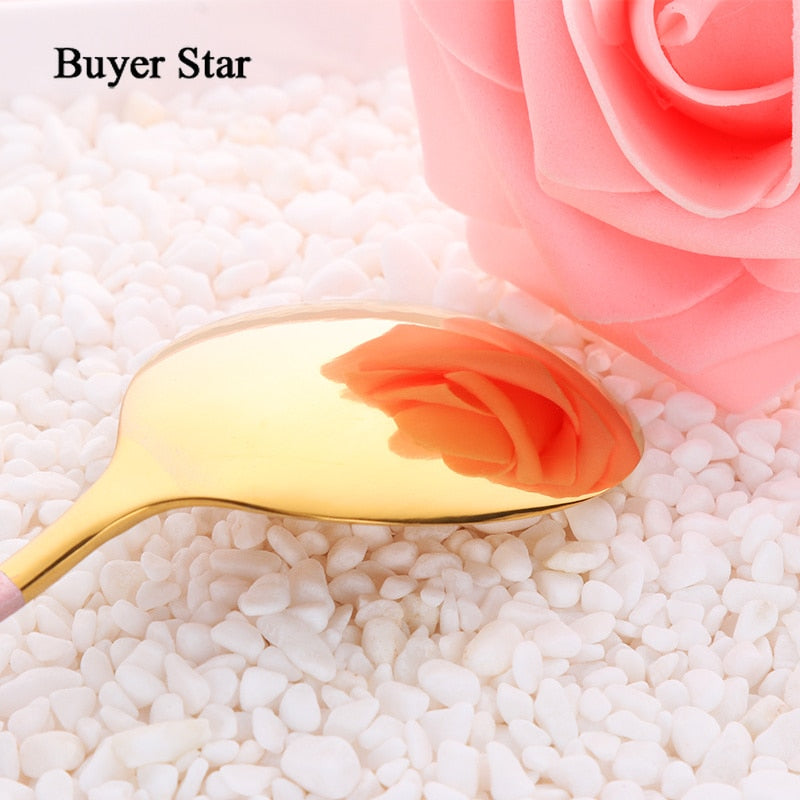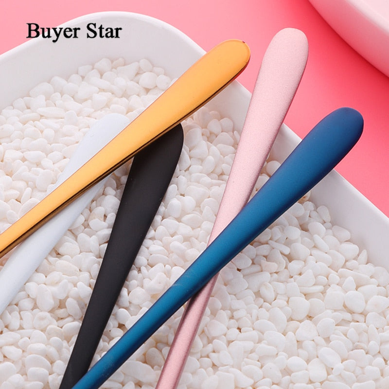 Buyer Star 5 Colors Stainless Steel Spoon 1 pcs Gold Spoon for Ice Cream Dinner Tableware Gold Plated Dessert Tea Coffee Spoons