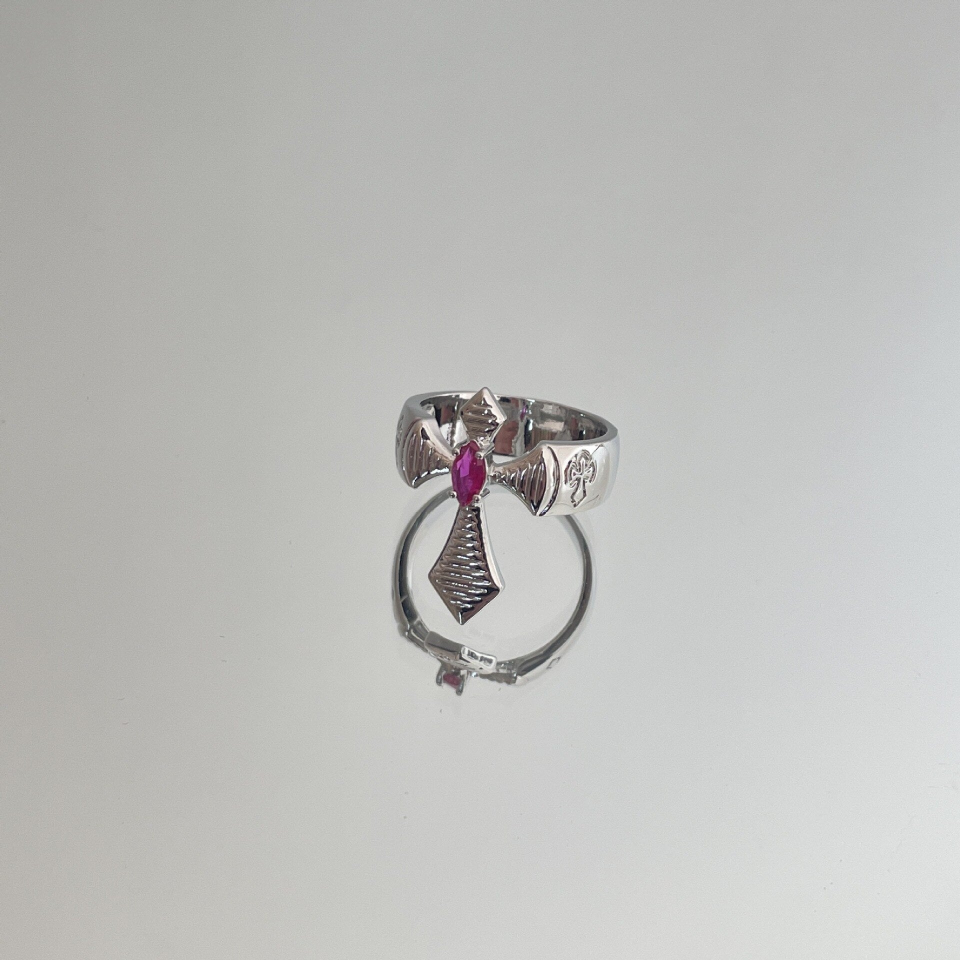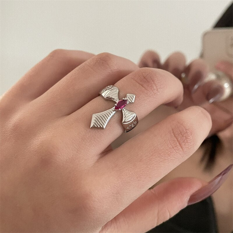 Cross Red Stone Open Ring