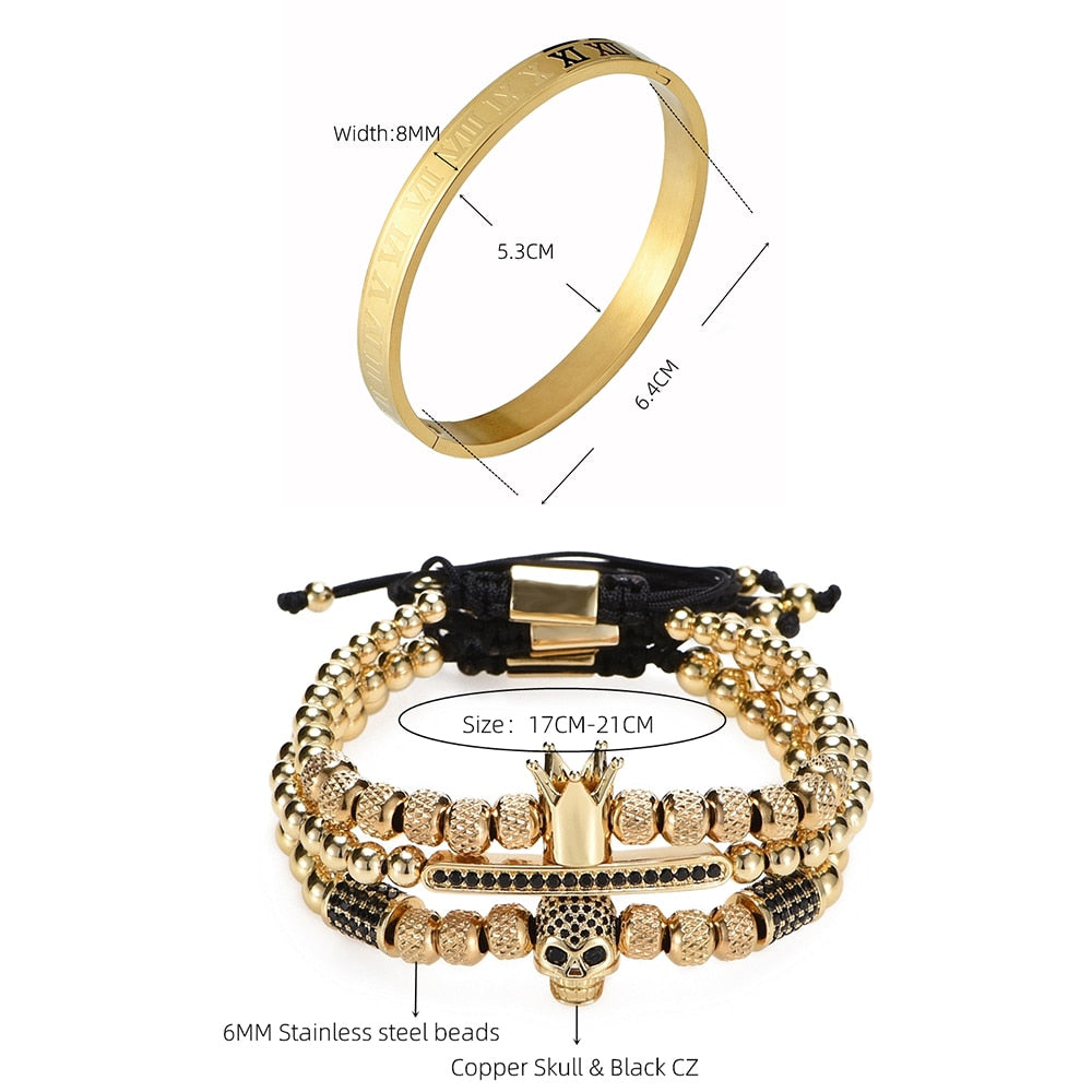 Look your best with the impressive and luxurious Crown Charm Bracelet Set. This 4-piece set features classical handmade braiding in stainless steel that is adorned with pave CZ beads and stylish skull or Roman numeral charms. Show off your sense of luxury and class like never before - this beautiful set adjusts from 16cm to 21cm, so you can find the perfect fit and show it off anywhere. The craftsmanship is unparalleled, offering supreme durability and a long-lasting design. For those who are searching for style, there is no better choice than the Crown Charm Bracelet Set. Make sure to get yours today - this is one luxury jewelry set you won't want to miss out on!