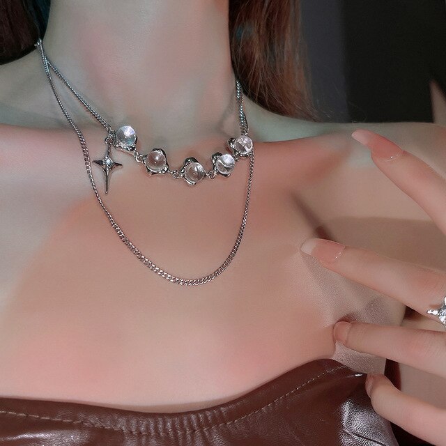 Make a statement with the Crystal Opal Moonstone Necklace! Each necklace is carefully crafted using high quality alloy and beautiful opal moonstone. The layered zircon star choker design, with the contemporary Y2K aesthetic, gives this necklace a unique and trendy look that complements any outfit. Whether you're looking for a keepsake necklace to commemorate an important milestone or just trying to add more flair to your everyday wardrobe, the stunning Crystal Opal Moonstone Necklace is sure to be your go-to accessory. Plus, it's perfect as a gift for friends and family alike – who wouldn't love this piece of jewelry? At such an affordable price, you won't want to miss out on this fashionable piece. Buy yours today!