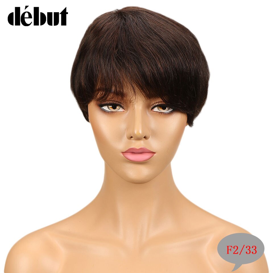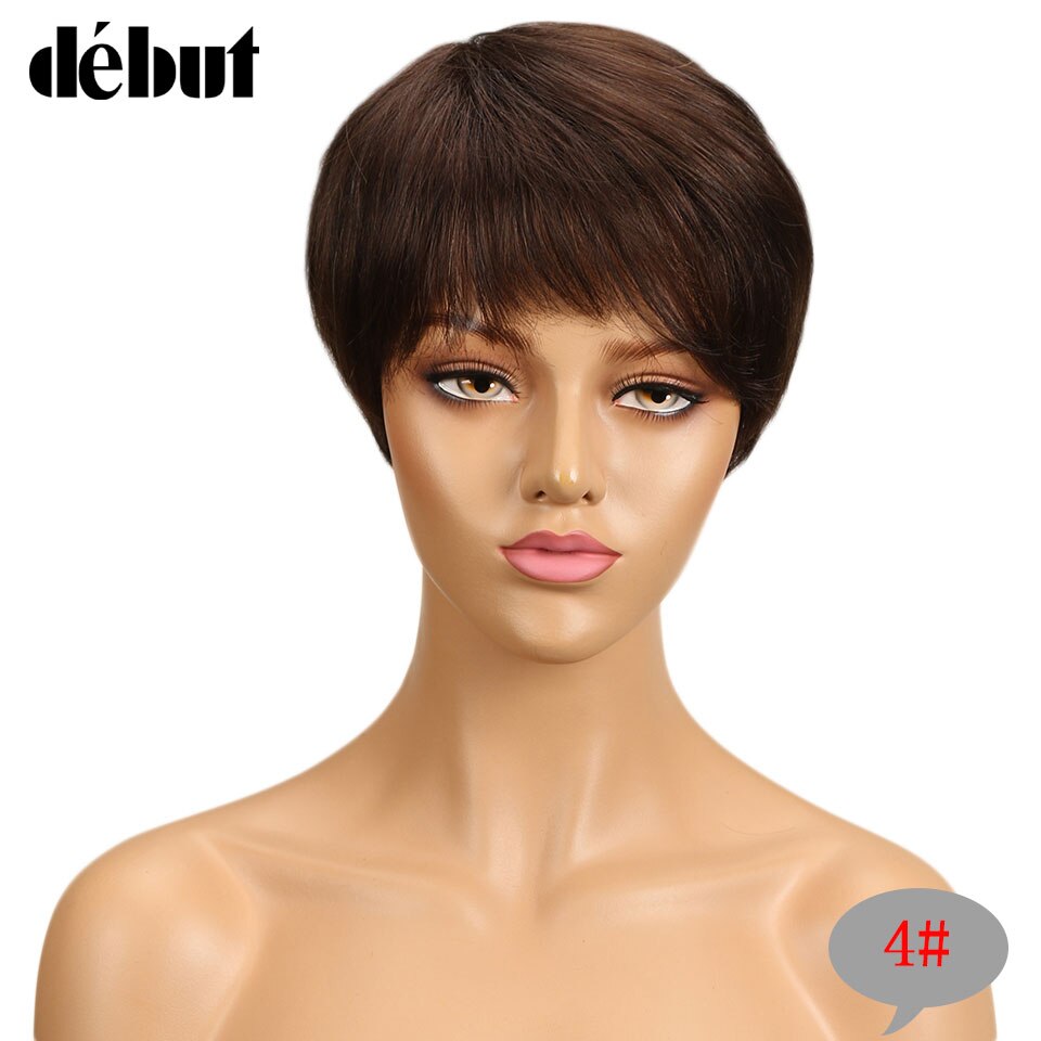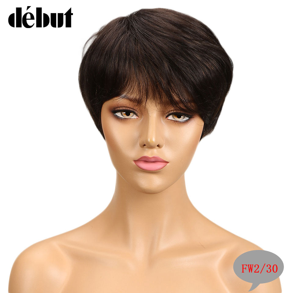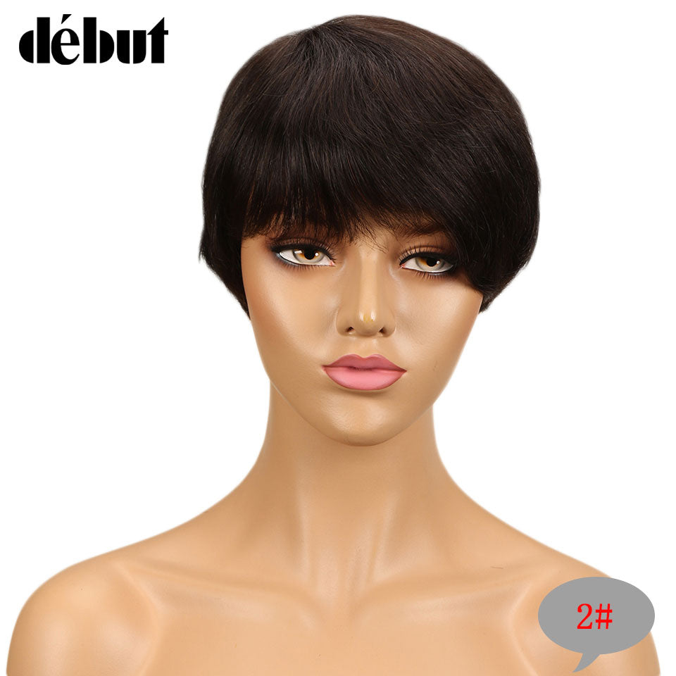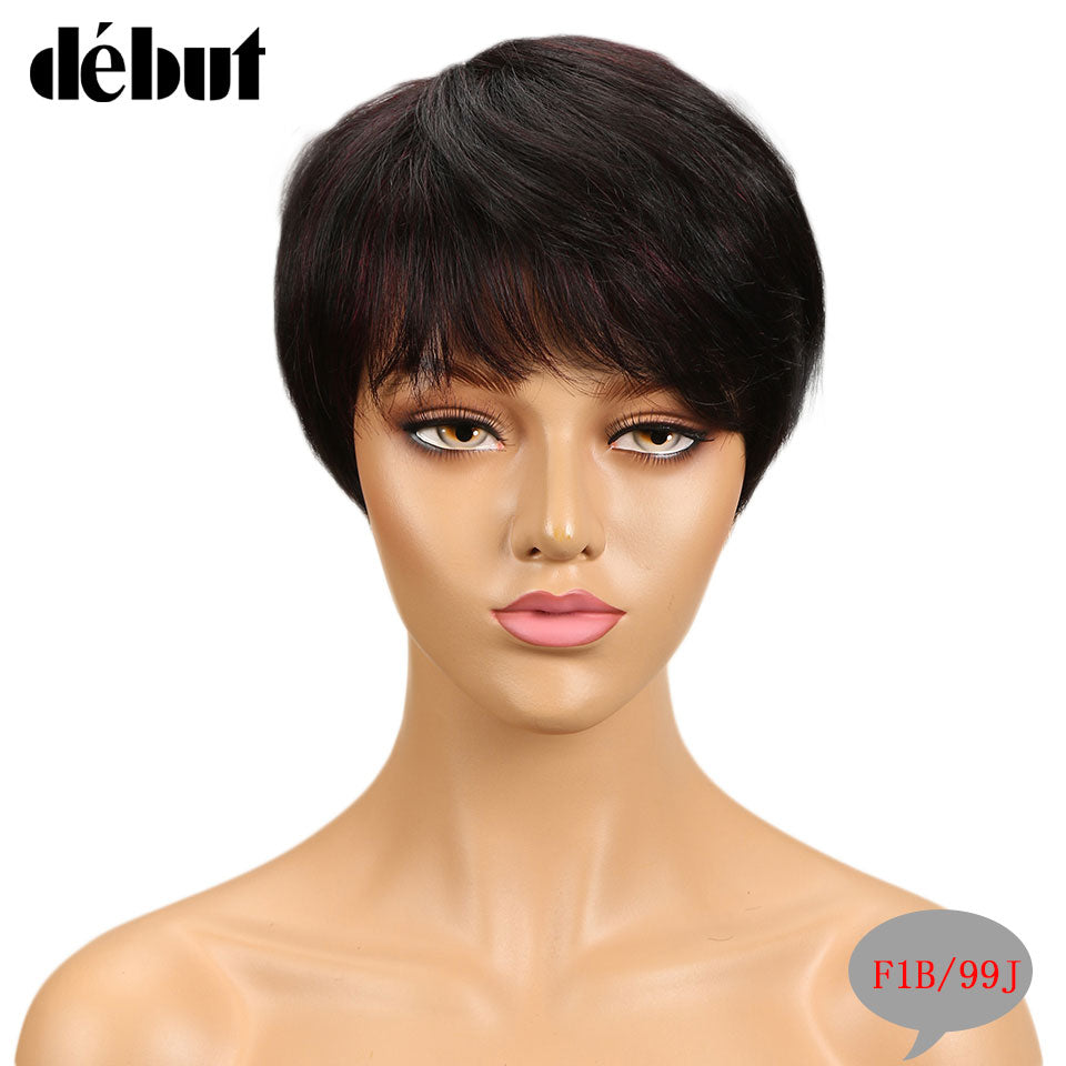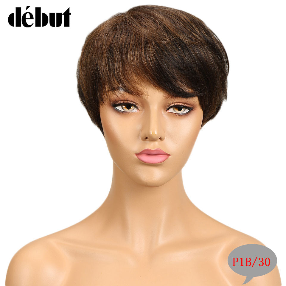 Debut Hair Brazilian Remy Short Straight Human Hair Wigs For Black Women Side Part Ombre Wigs With Bangs Free Shipping
