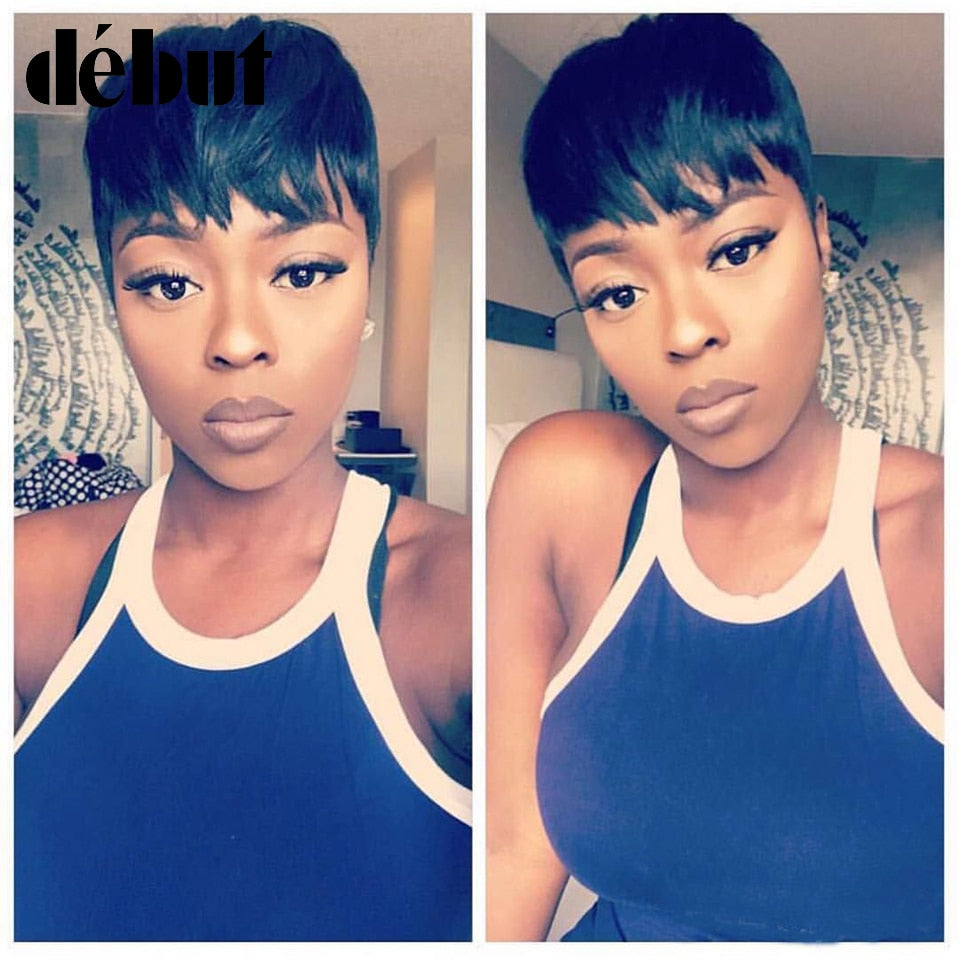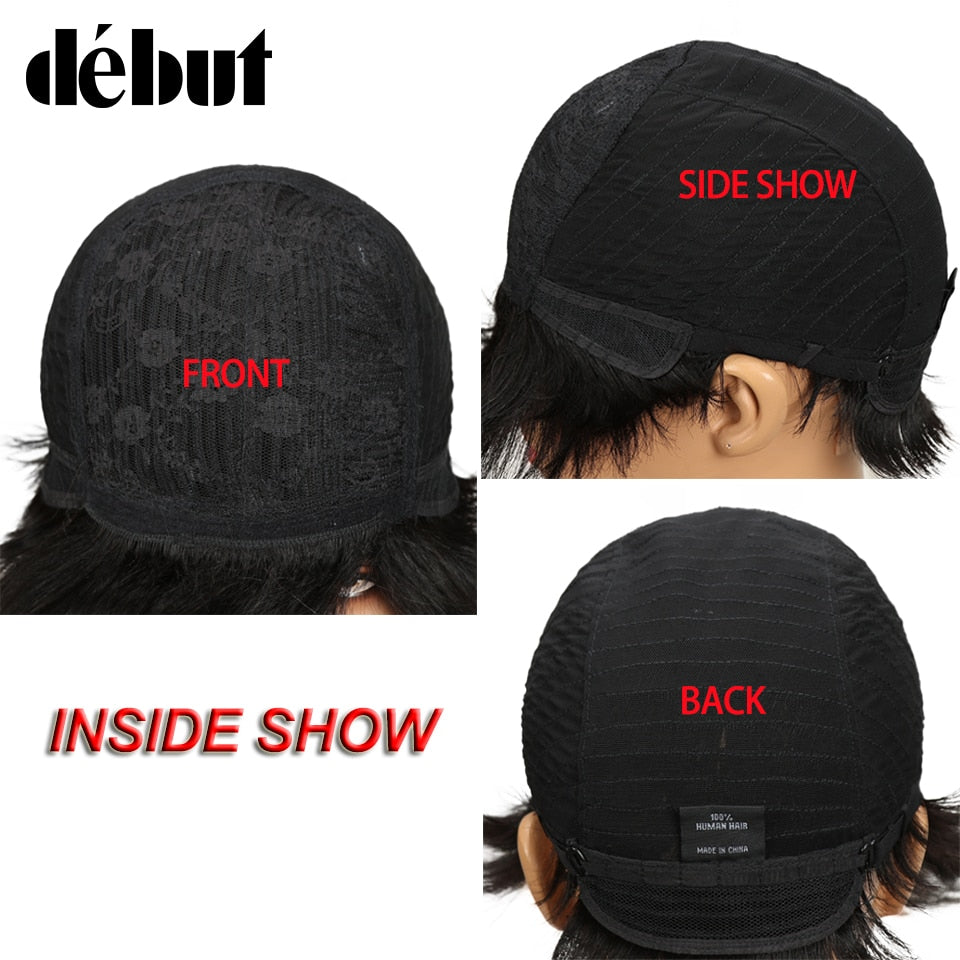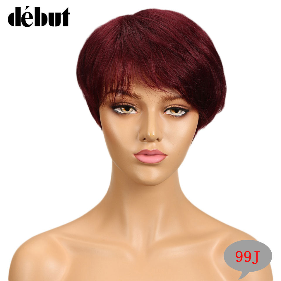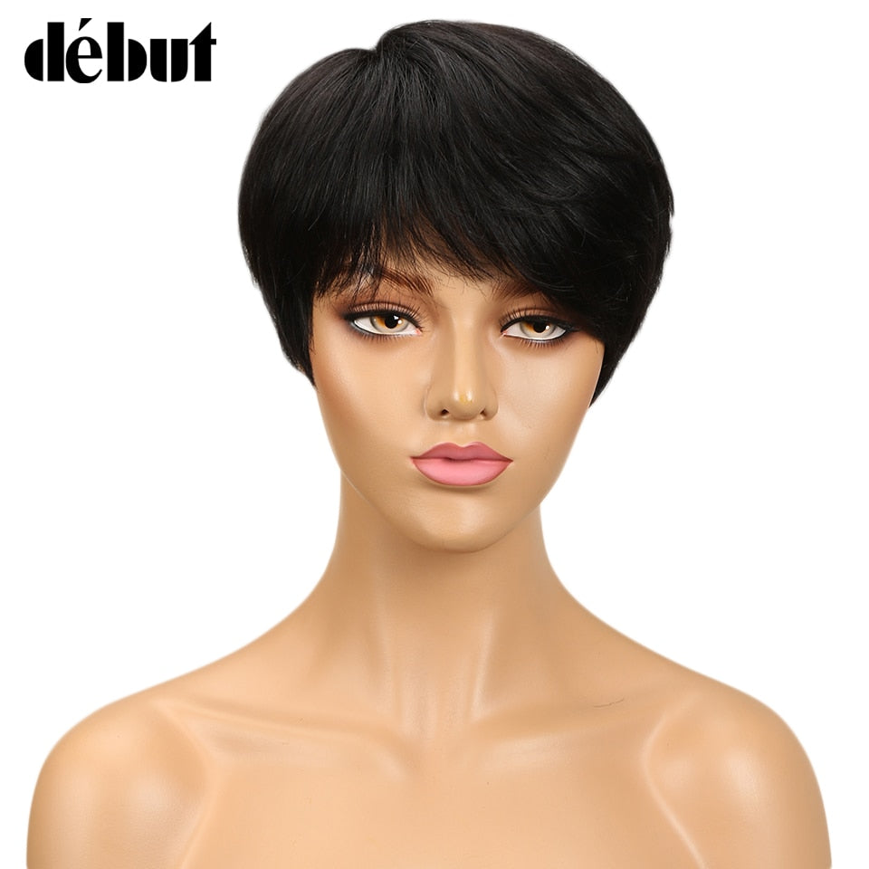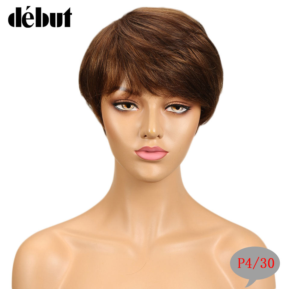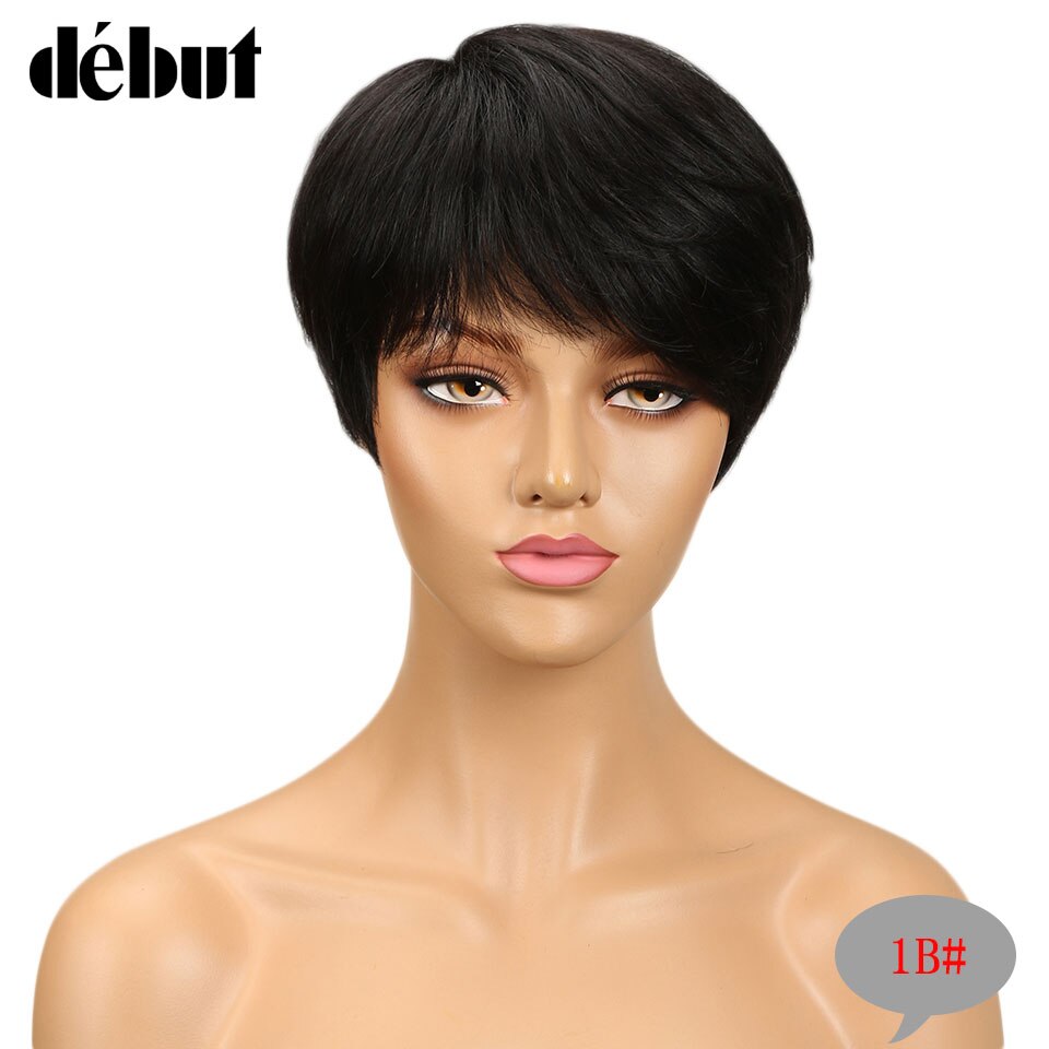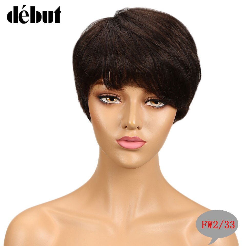 Debut Hair Brazilian Remy Short Straight Human Hair Wigs For Black Women Side Part Ombre Wigs With Bangs Free Shipping