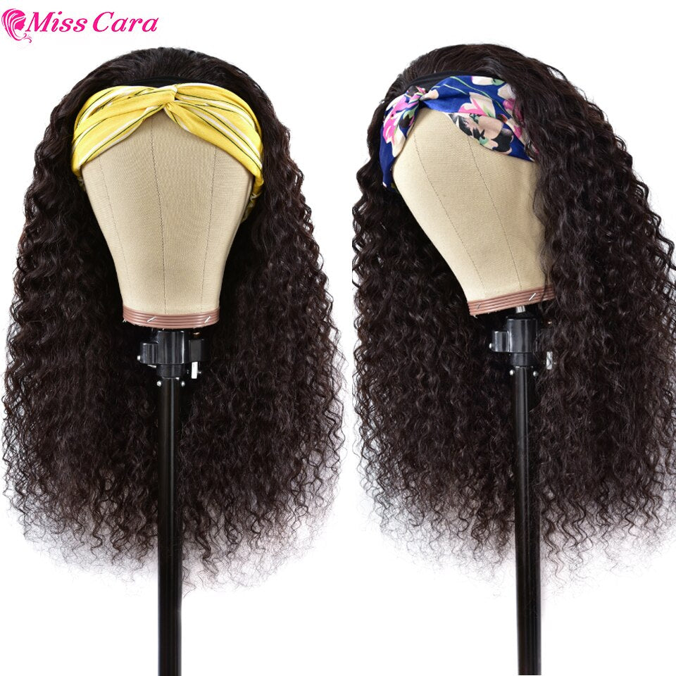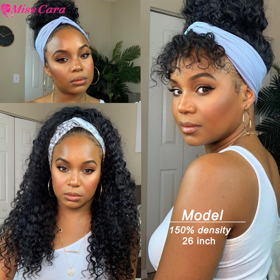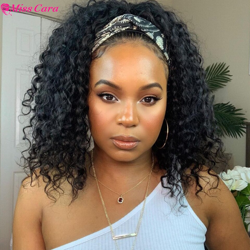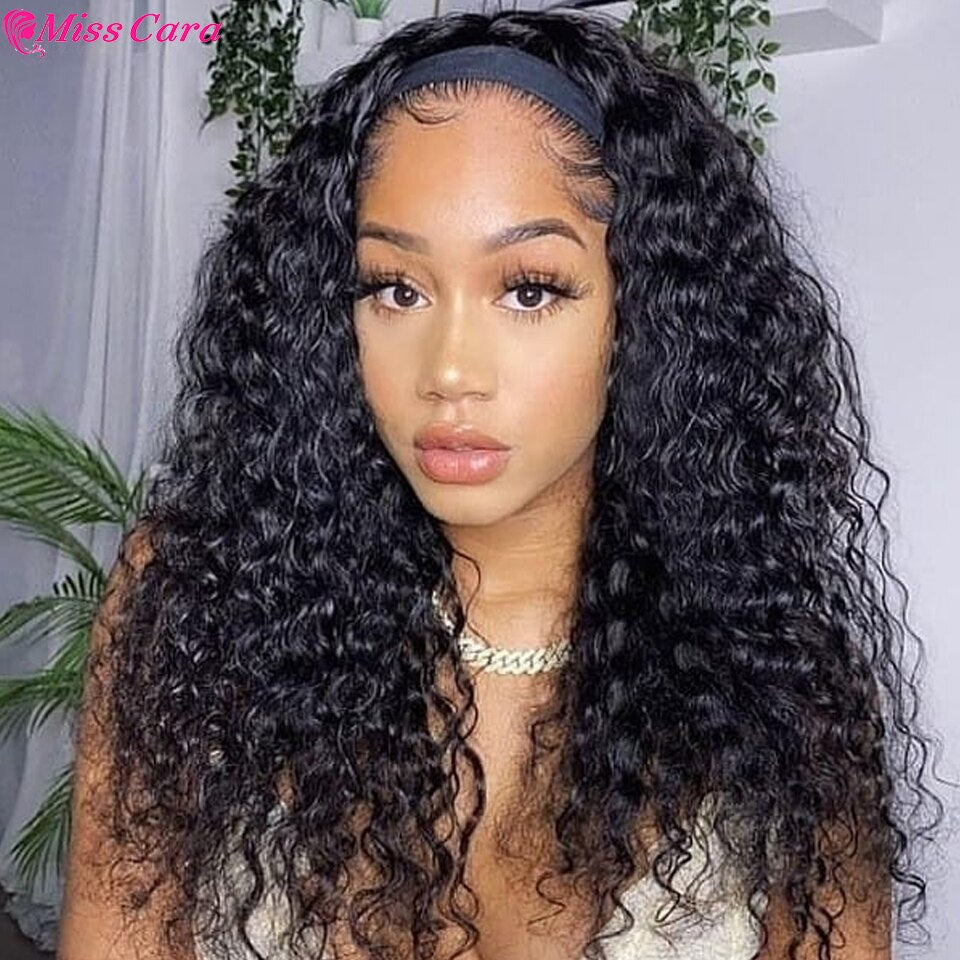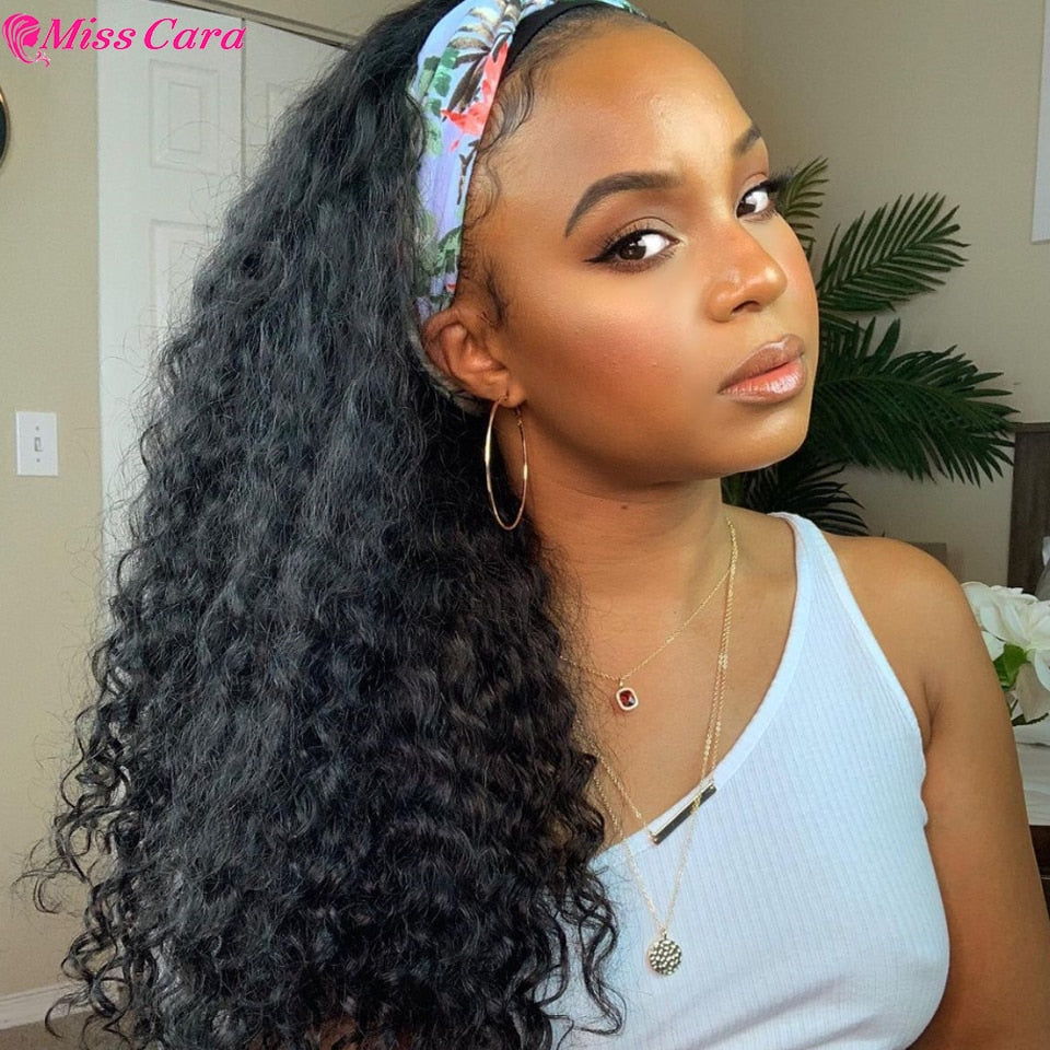 Deep Wave Headband Wig Human Hair Water Wave Wig Peruvian Remy Human Hair Headband Wig For Women bone straight Headband Wigs