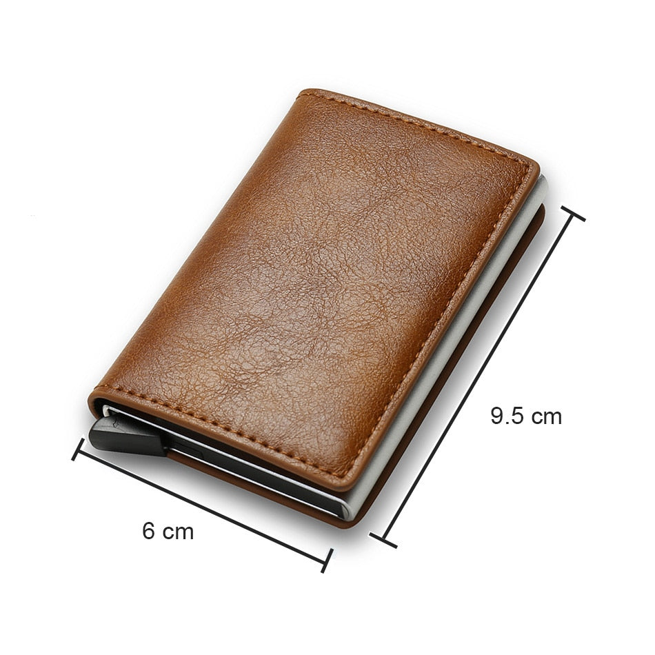 DIENQI Anti Rfid Protection Men Women Credit Card Holder Money Leather Slim Mini Wallet Metal Aluminum Business id Card Case Bag