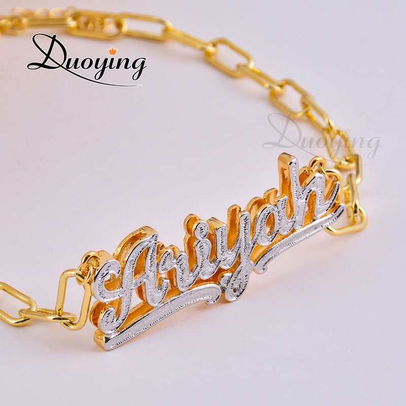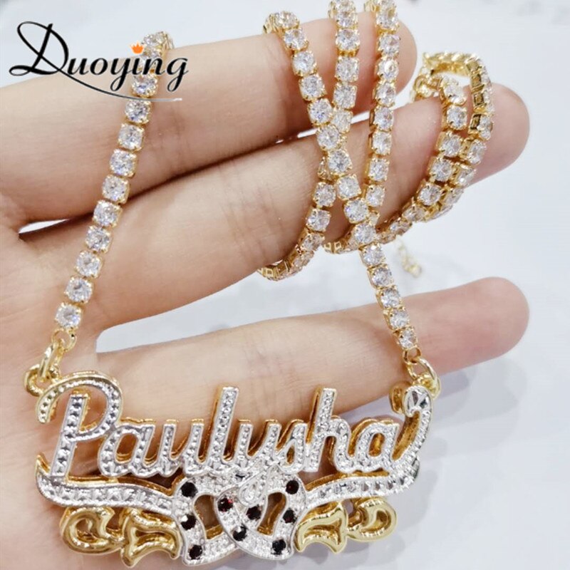 DUOYING Zircon Custom Necklace Double Gold plated Nameplate 3D Necklace Personalized Necklaces Choker Women Name Necklace Gift