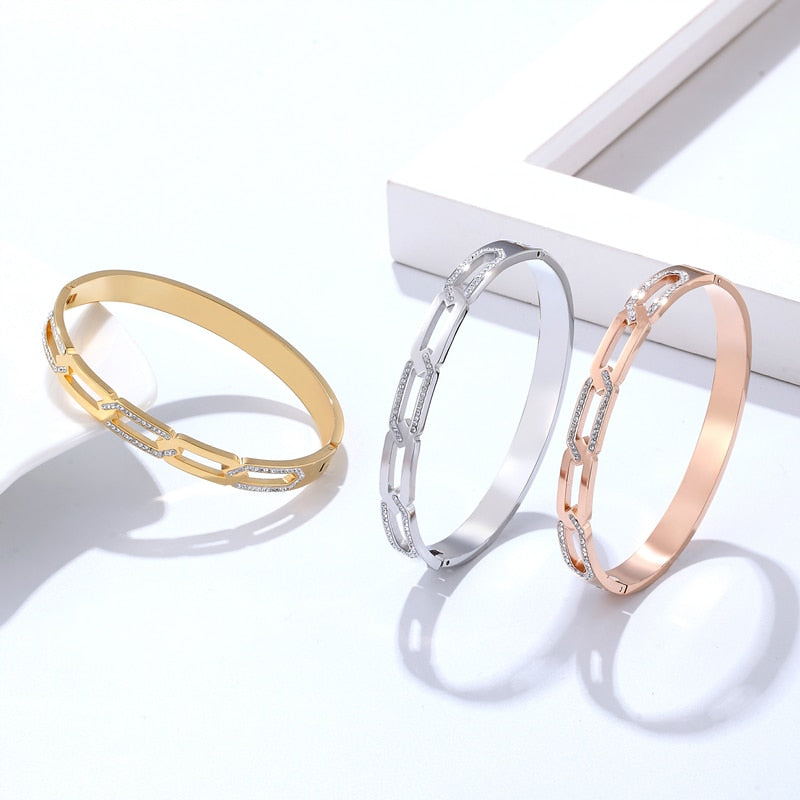 Exquisite Zircon Chain Shape Bracelets & Bangle Stainless Steel Woman Trendy Brand Bangle Gold Plated Jewelry Pulseira Wholesale