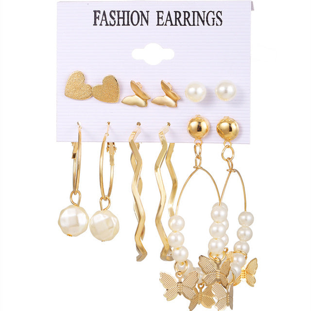 Gold Sequin Drop Earrings Set