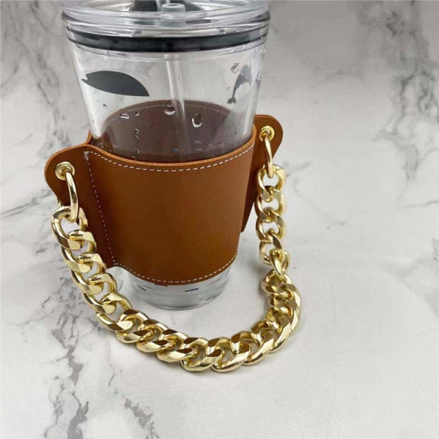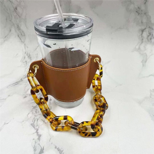 Description: Eco-friendly PU leather portable cup holder Eco-friendly leather, no peculiar smell Elegant appearance, portable The chain is amber, detachable Specifications: Net weight:81g Size:16.2*7.2(cm) Color: As show Material: PU leather Package Included: 1*Cup Holder sets(No include the cup)