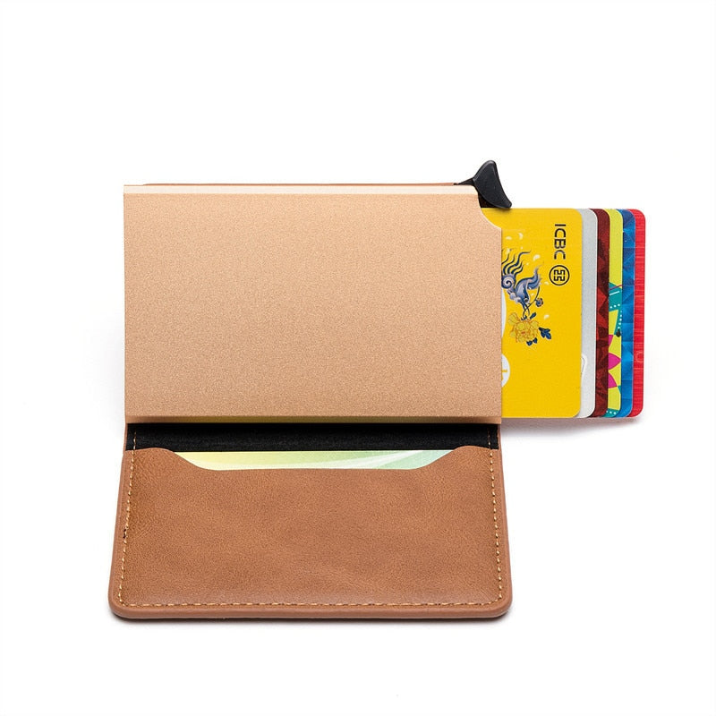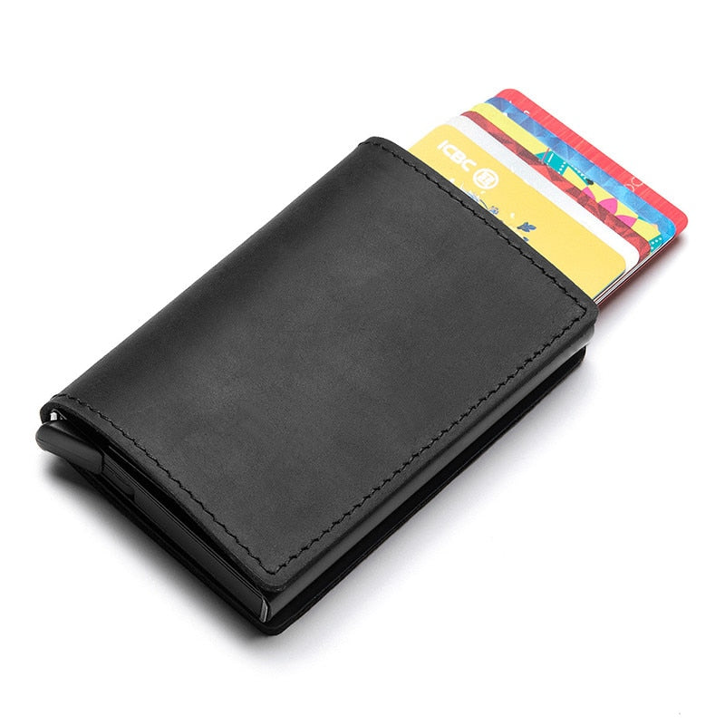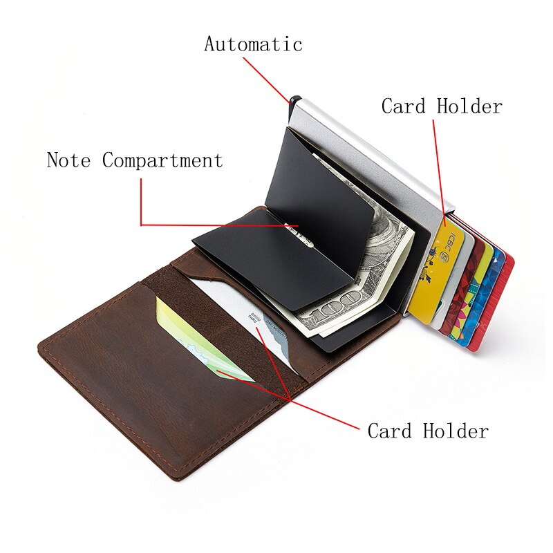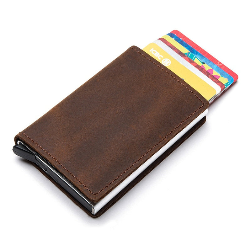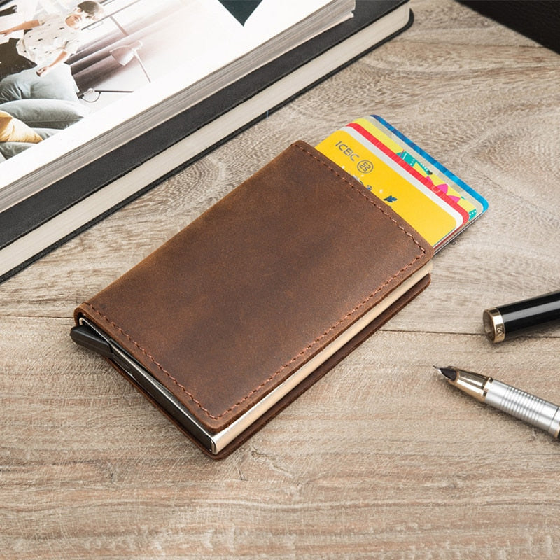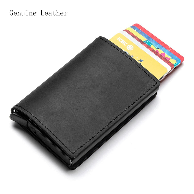 Hot Genuine Leather Rfid Credit Card Holder Wallet Man Retro Small Cardholder Trifold Crazy Horse Card Wallet Men Slim Card Case