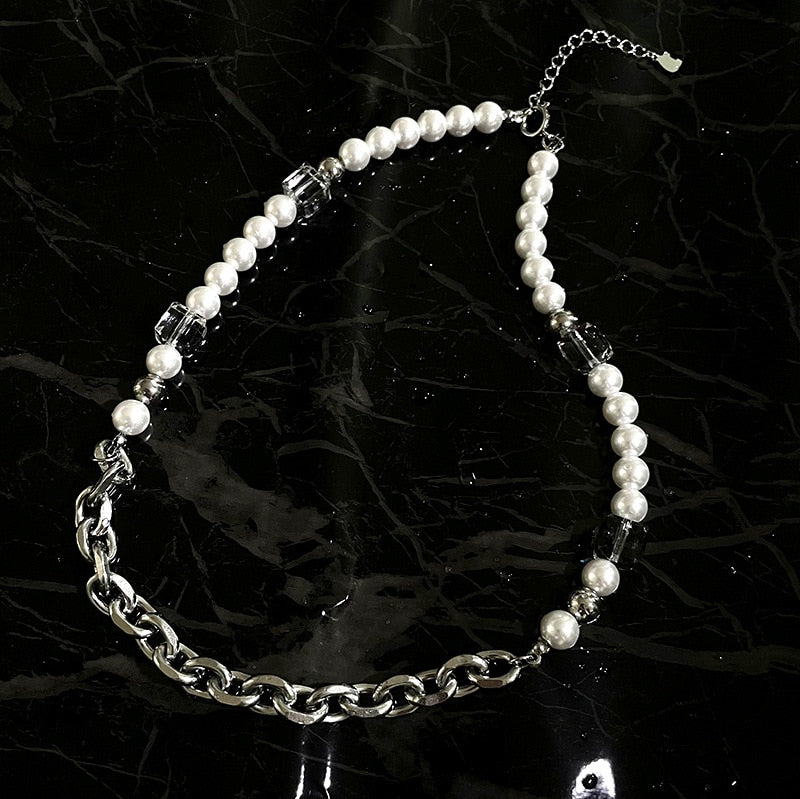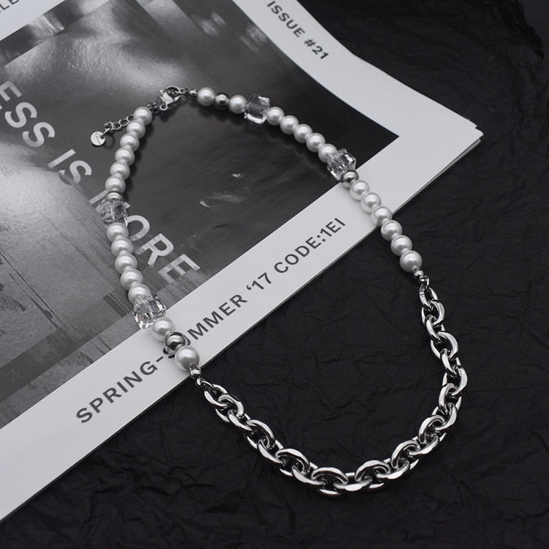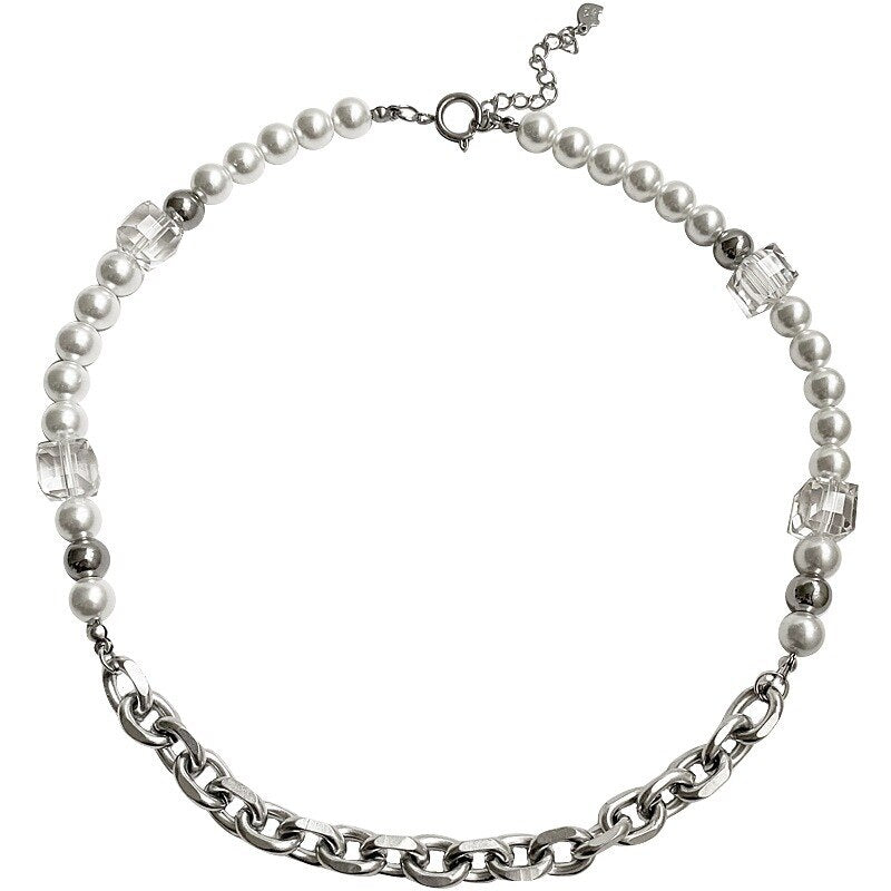 Introducing the Industrial Pearl & Chain Necklace by PRBŁM, a must-have accessory for the modern woman. This stunning necklace is 45 cm in length and features 6mm faux pearls. It's also sweat, heat and water resistant, so you can wear it with confidence no matter what the day brings. Plus, it won't discolour or tarnish over time. Add a touch of elegance to any outfit with this timeless piece.