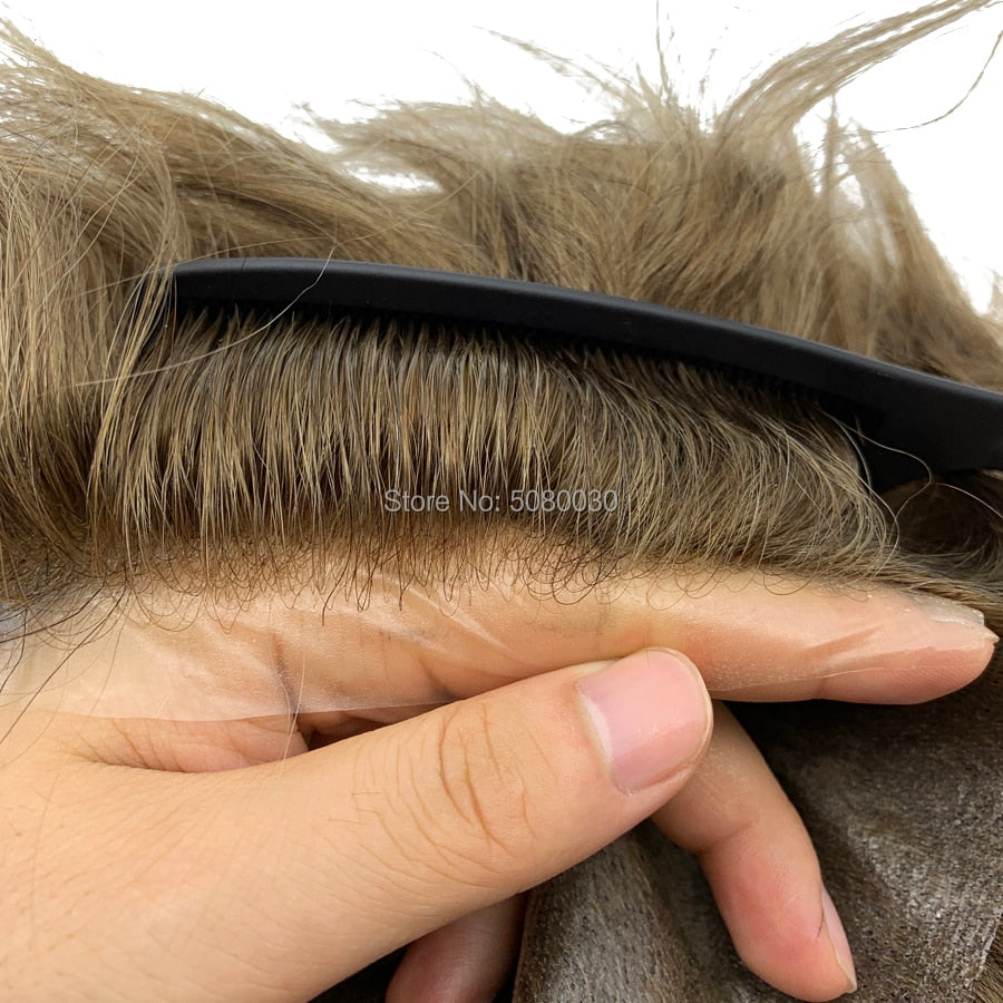 Invisible Knot Natural Hairline Men Toupee 100% Euro-Touch Human Hair Front Toupee