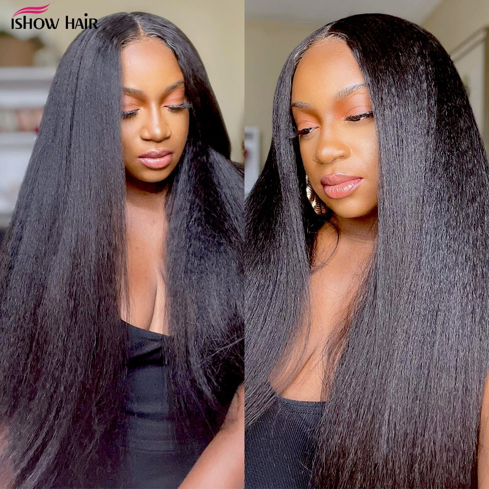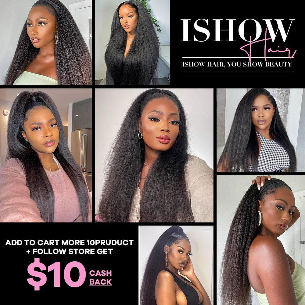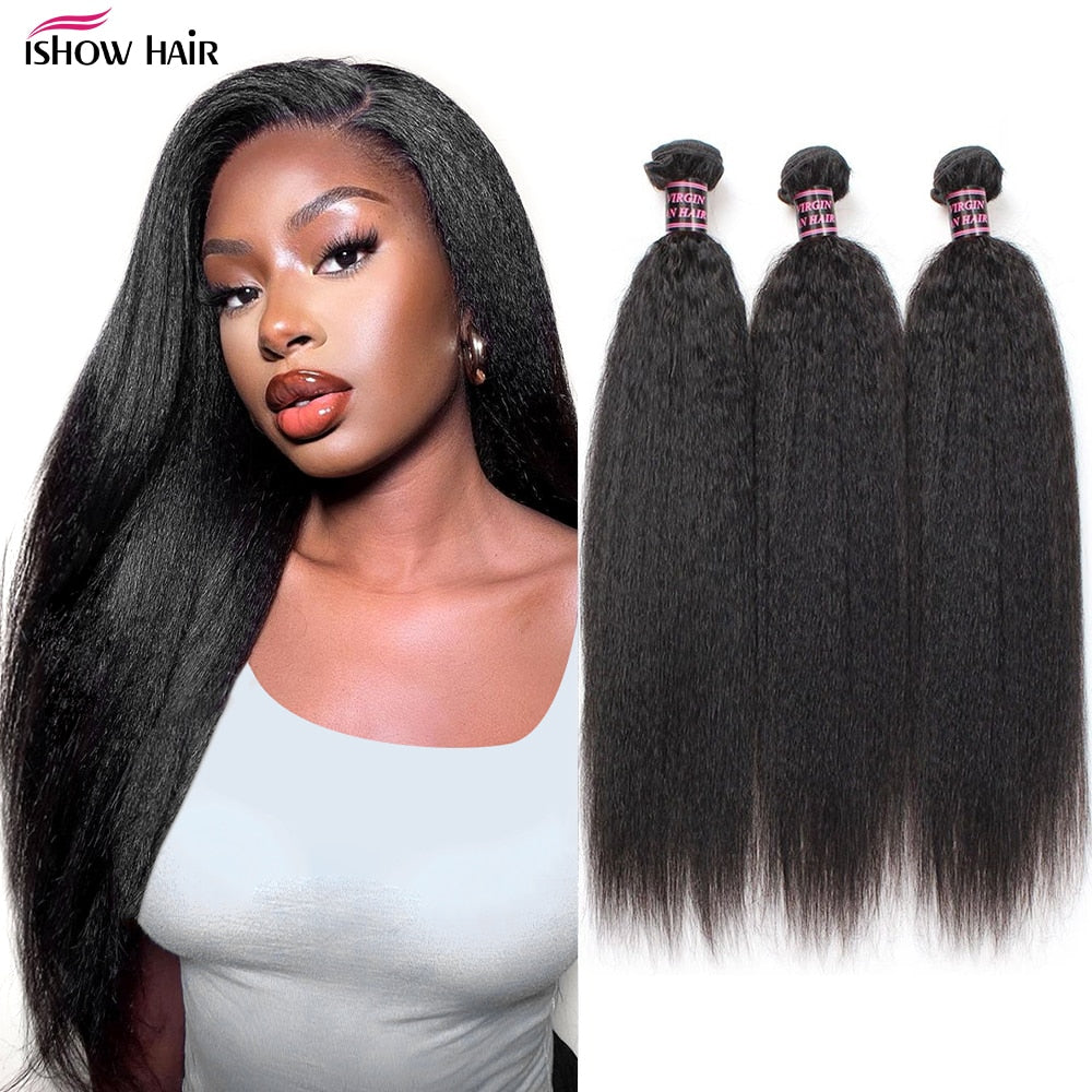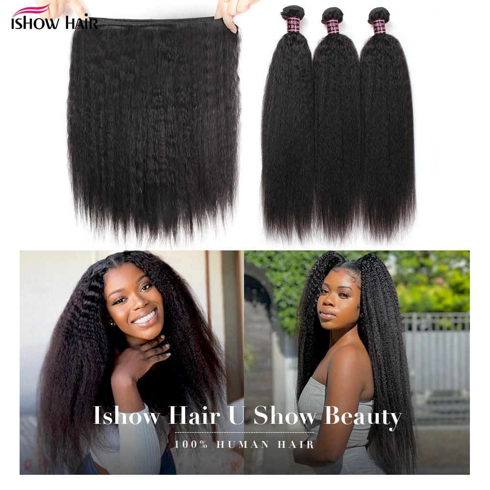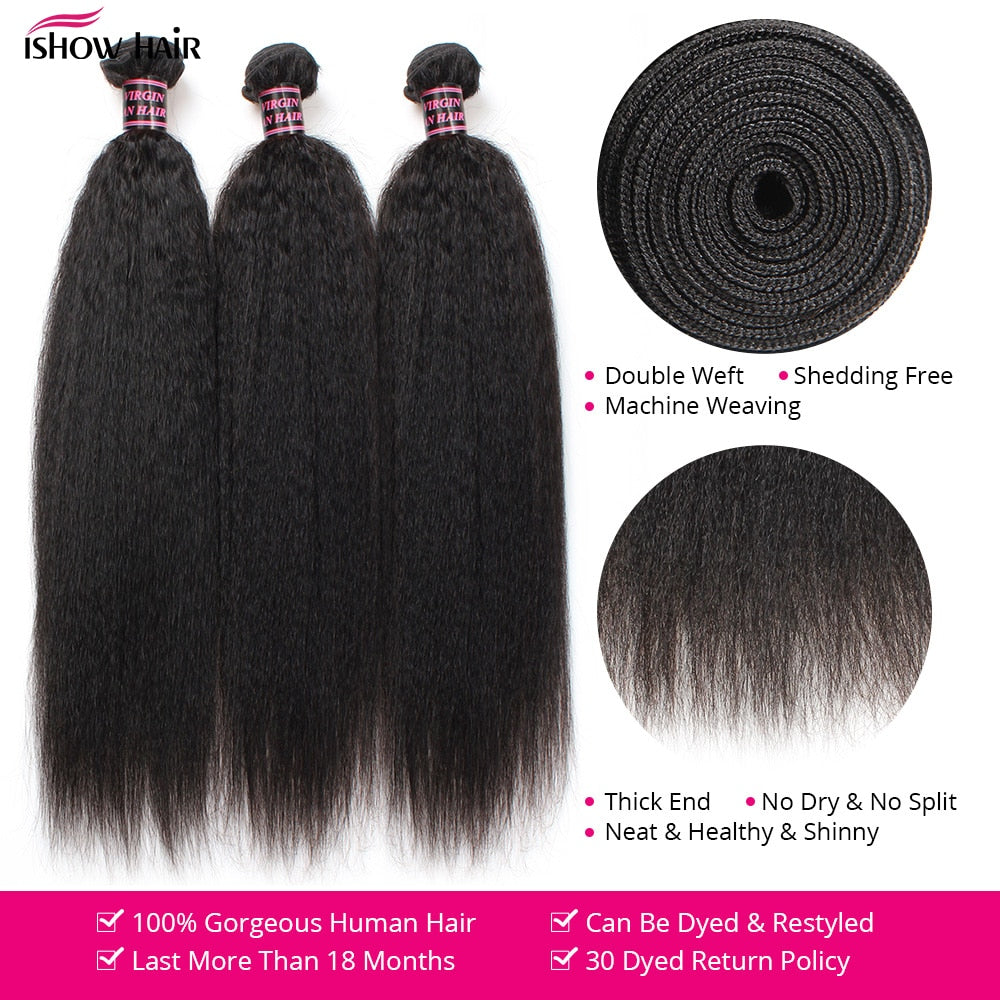 Ishow Peruvian Kinky Straight Hair Weave Bundles 8A Grade Human Hair Bundles Yaki Human Hair Extension Natural Black Color