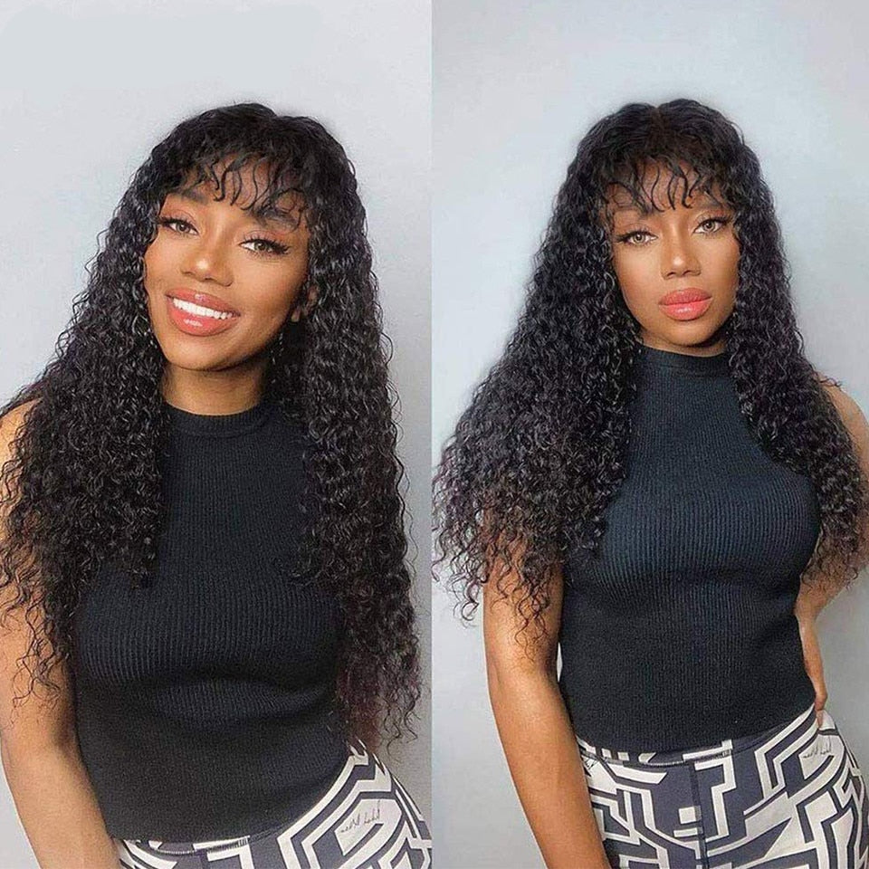 Jerry Curly Wig: Deep Curly Long Human Hair Bang Wig