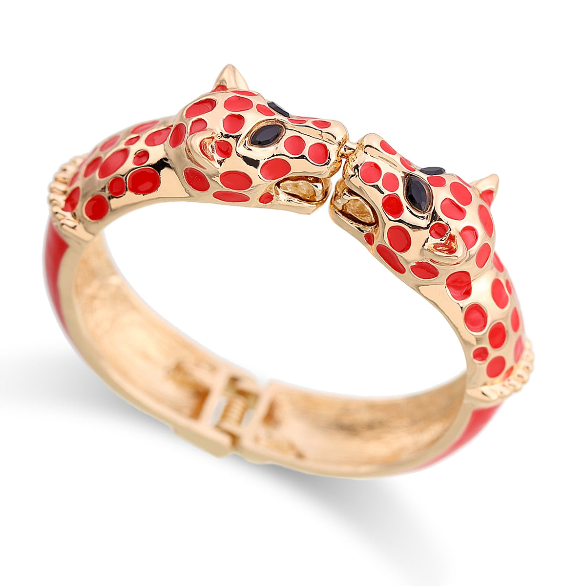 KAYMEN New Fashion Statement Animal Enamel Cuff Bracelets Bangle Gold Plated Colourful Double Leopards Bracelet for Women