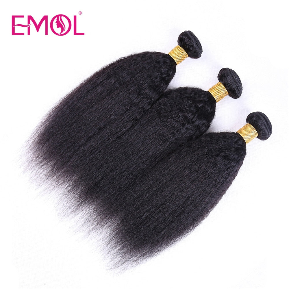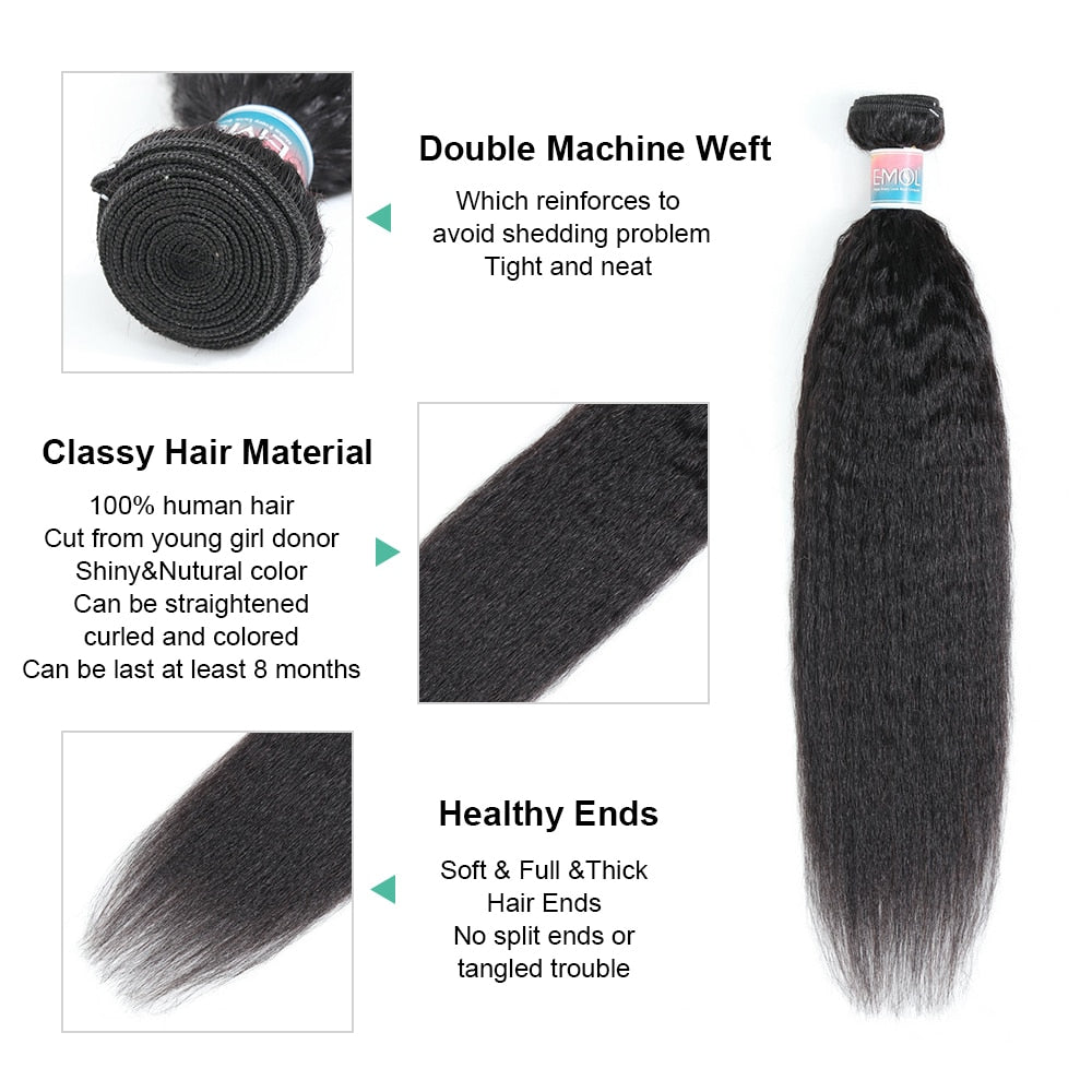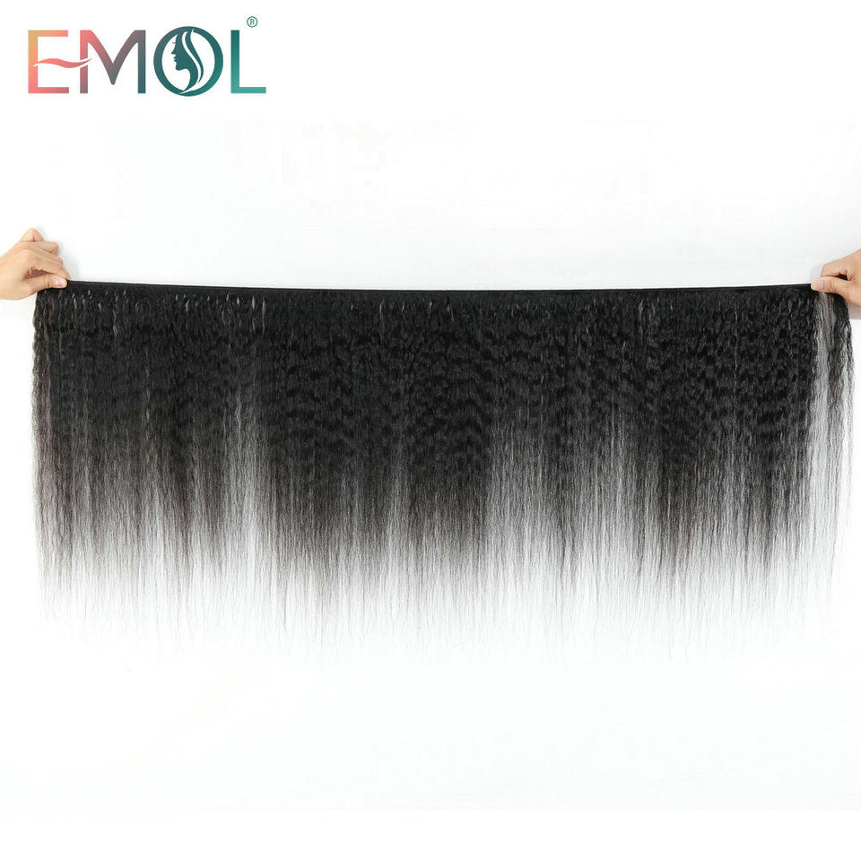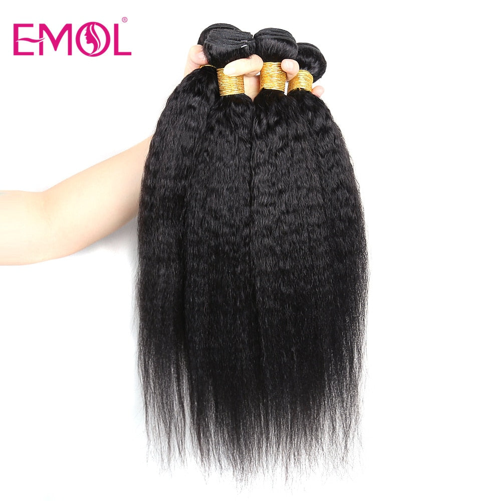 Kinky Straight Hair Bundles 100% Human Hair Extensions Wholesale Vendor Yaki Straight Hair 3/4 Bundles Natural Hair Weave EMOL