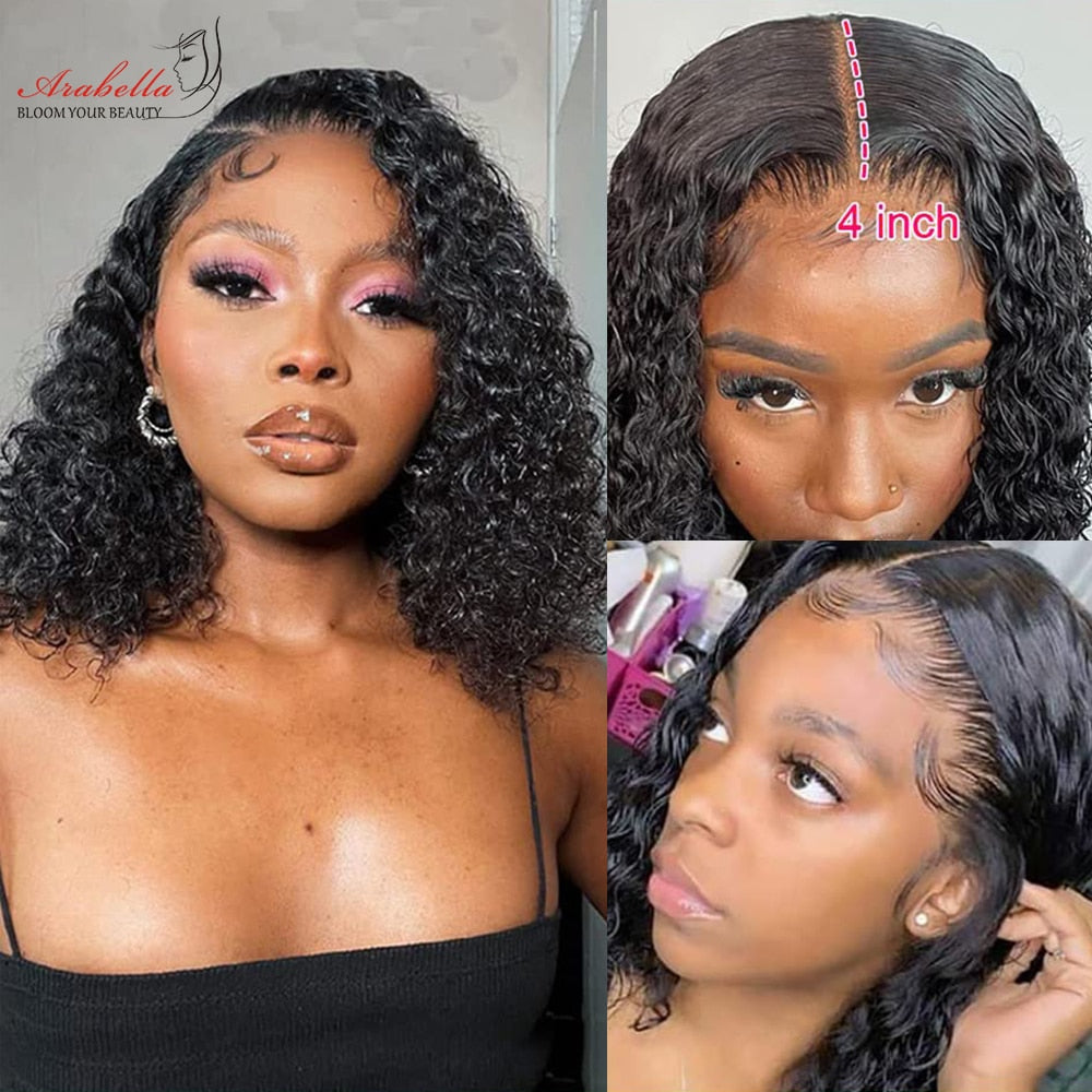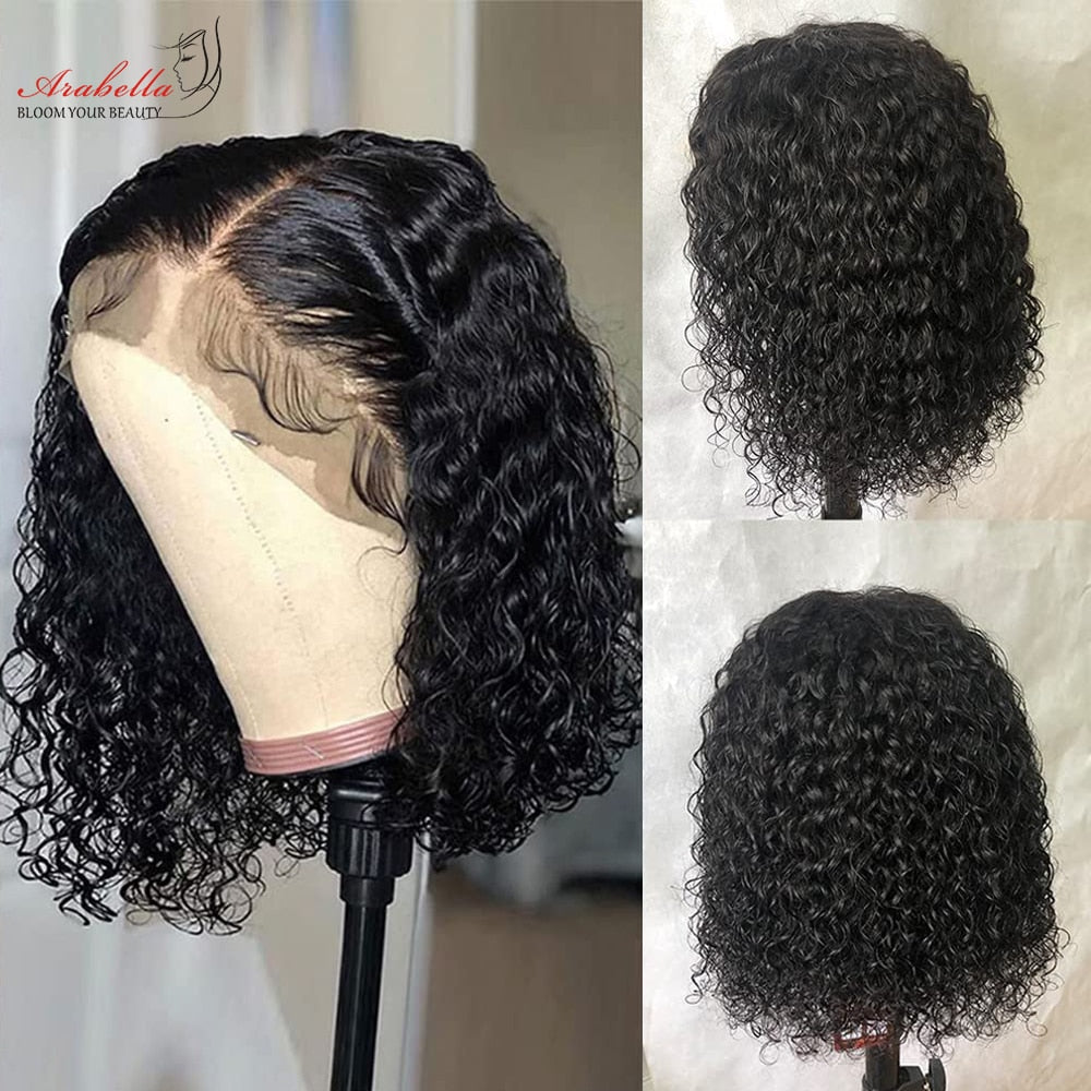 Lace Front Human Hair Wigs Bob Water Wave Transparent Lace Wig Pre Plucked Bleached Knots Arabella T Part Wig Remy Hair Bob Wig