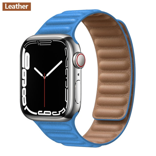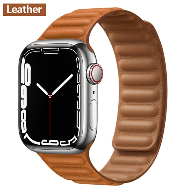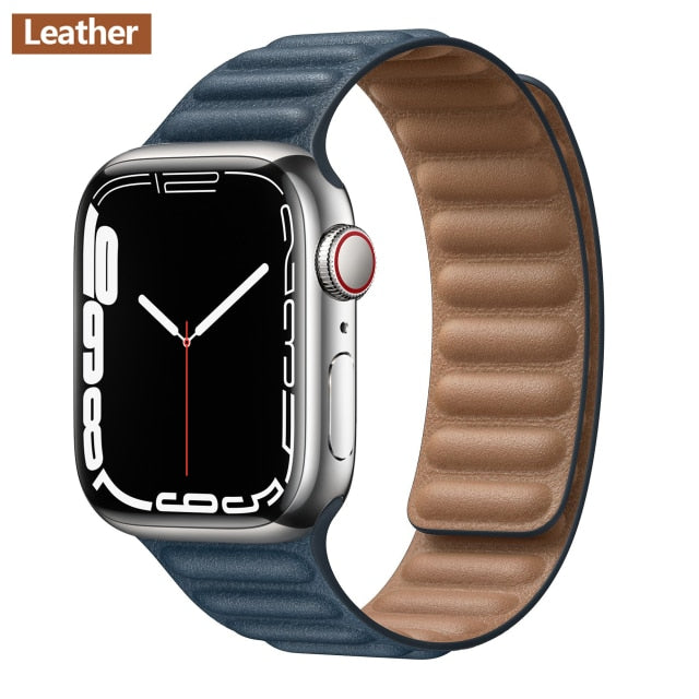 Leather Link For Apple watch band 44mm 40mm 41mm 45mm 42mm 38mm original Magnetic Loop bracelet iWatch series 3 5 4 SE 6 7 strap