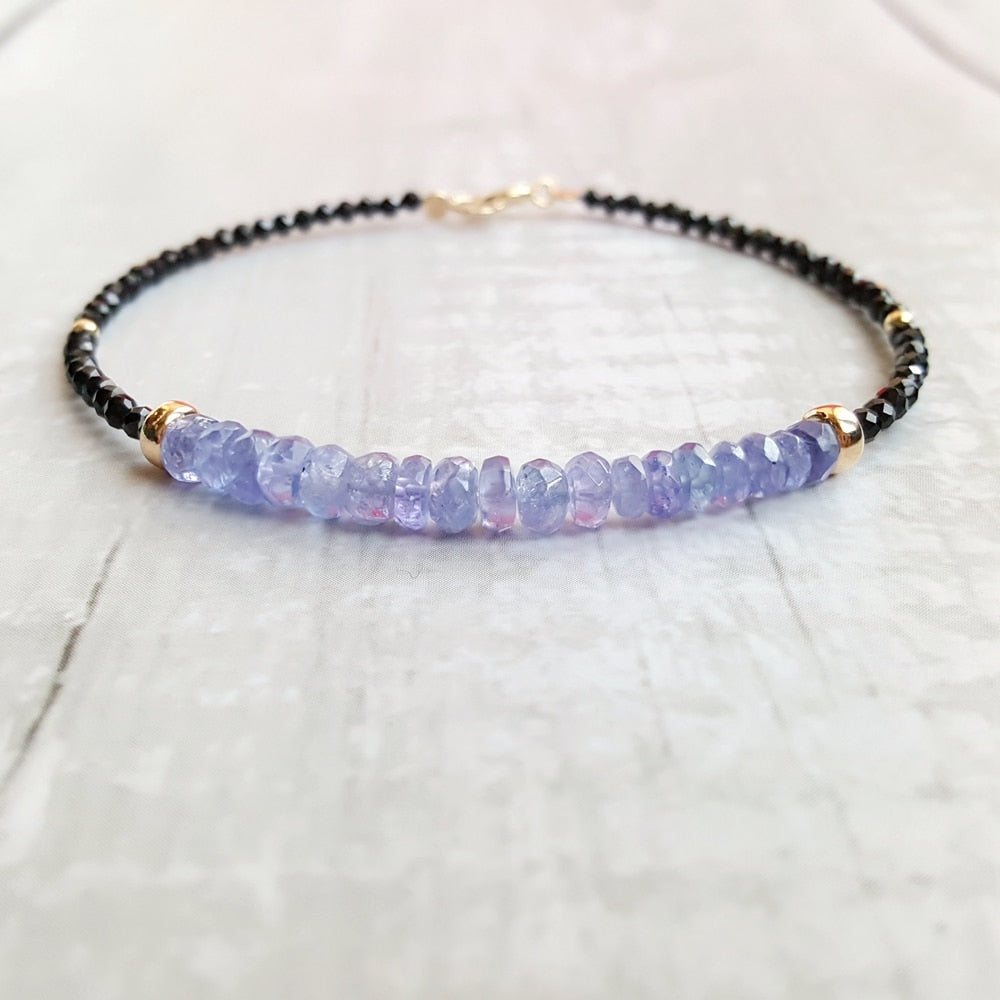 Lii Ji Tanzanite Black Spinel Bracelet Natural Stone 925 Sterling Silver Gold Plated Sparkling Delicate Jewelry Dropshipping