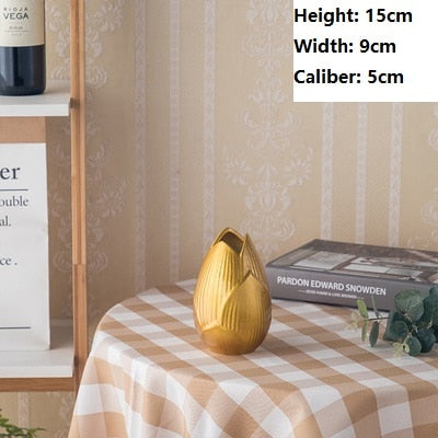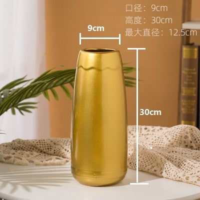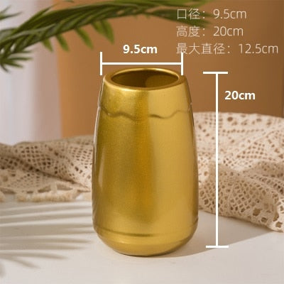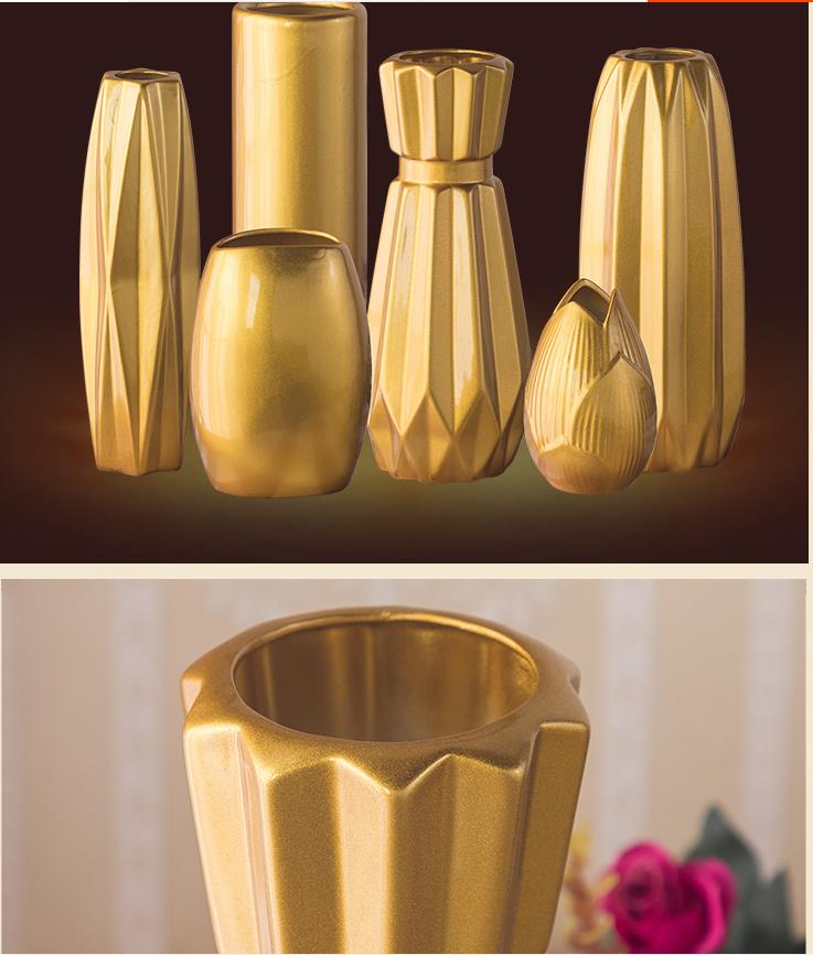 Luxury Europe Gold-plated Ceramic Vase Home Decor Creative Design Porcelain Decorative Flower Vase For Wedding Decoration