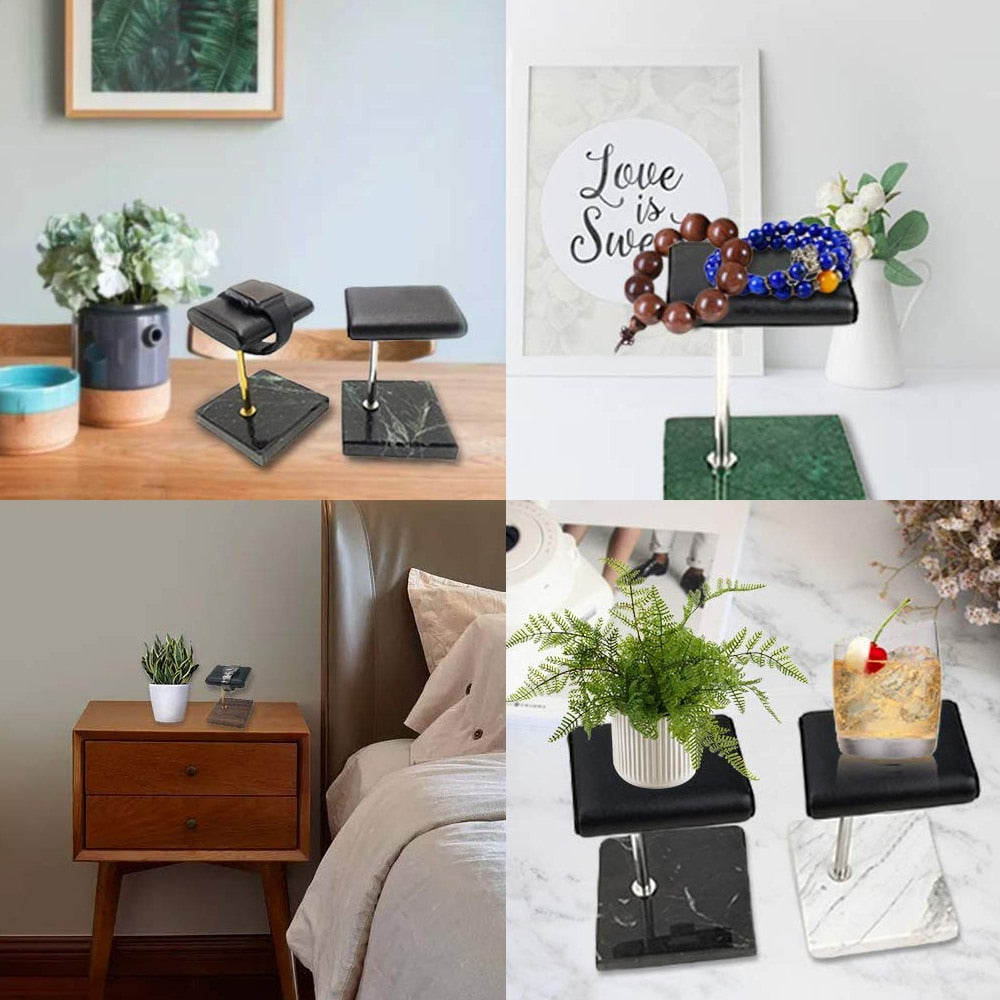 Sturdy and stable marble, PU leather watch holder cushion, innovative, noble luxury and eye catching.