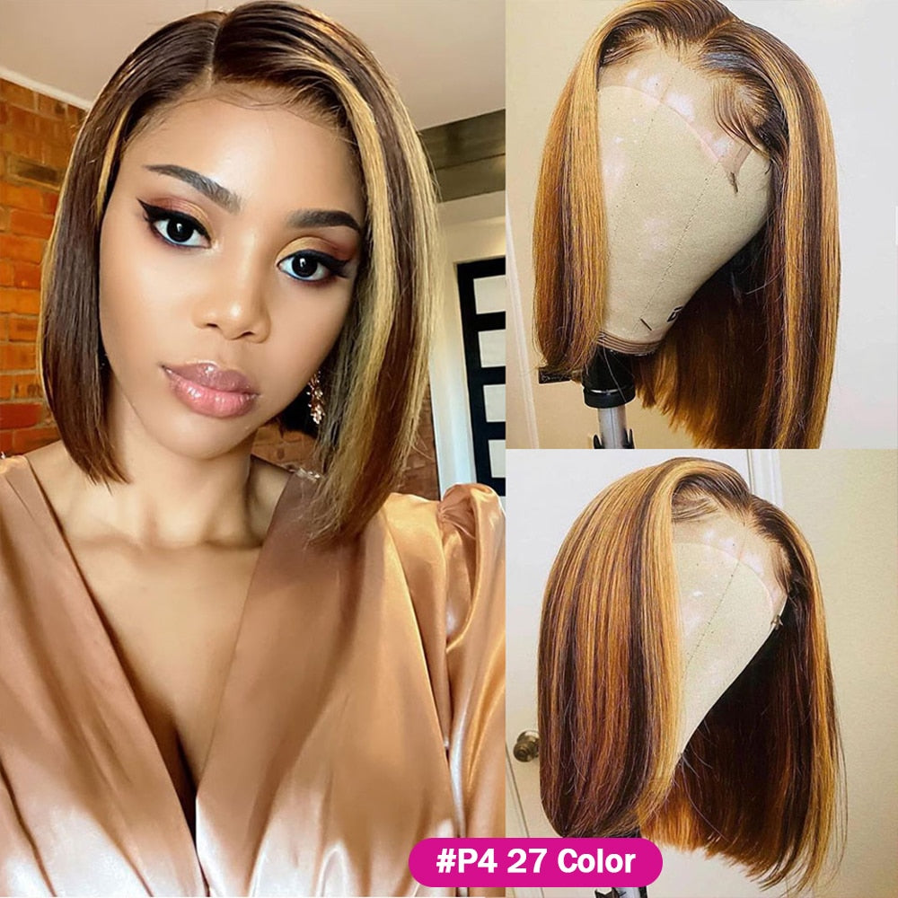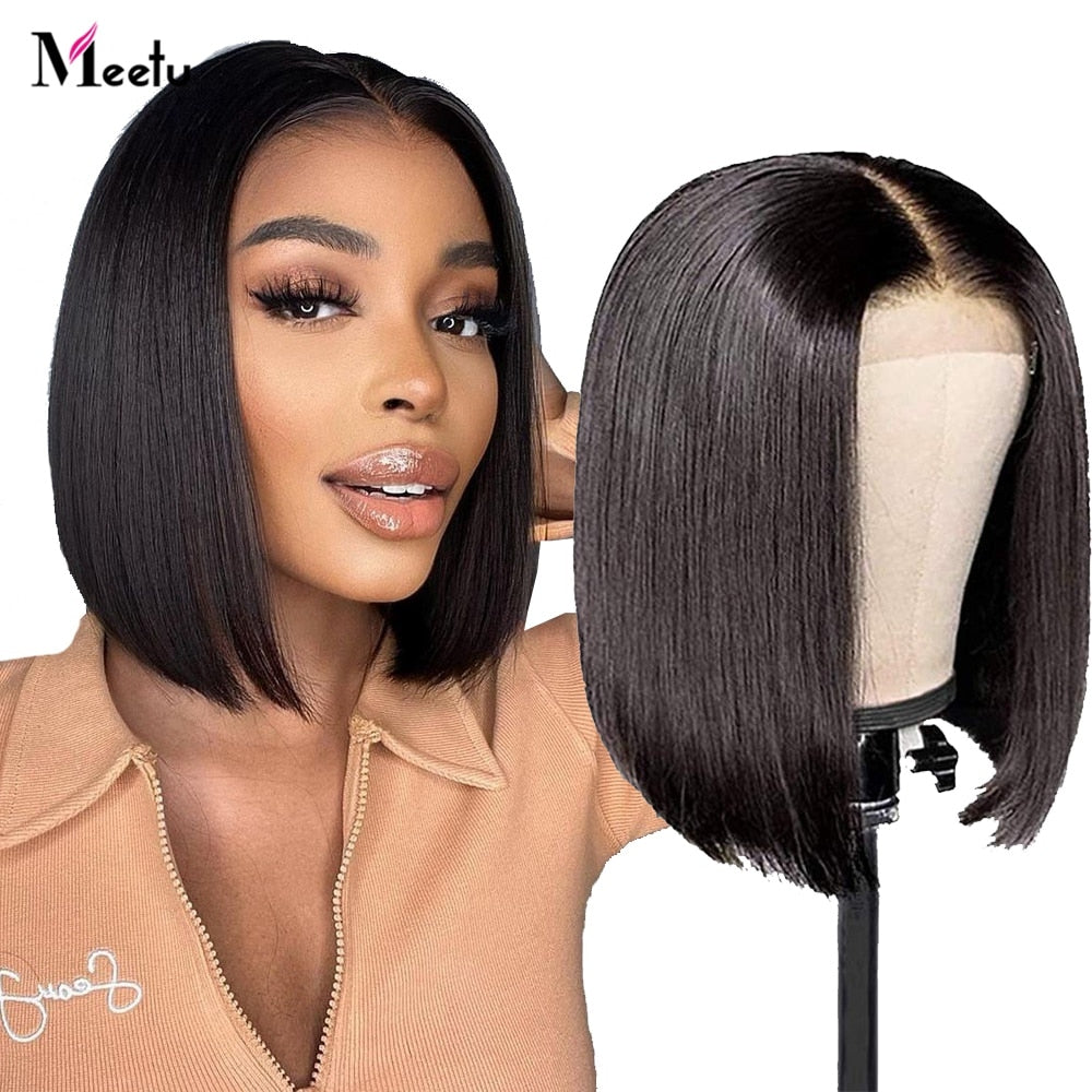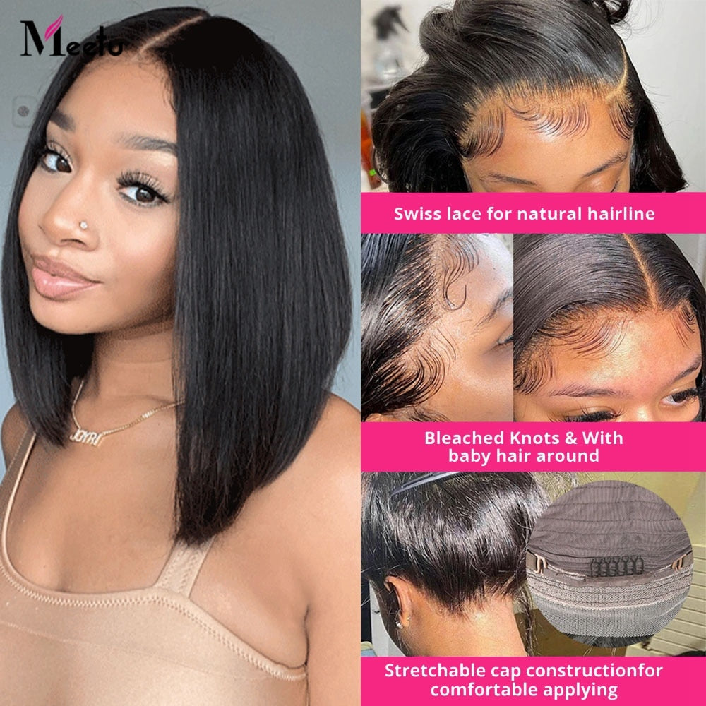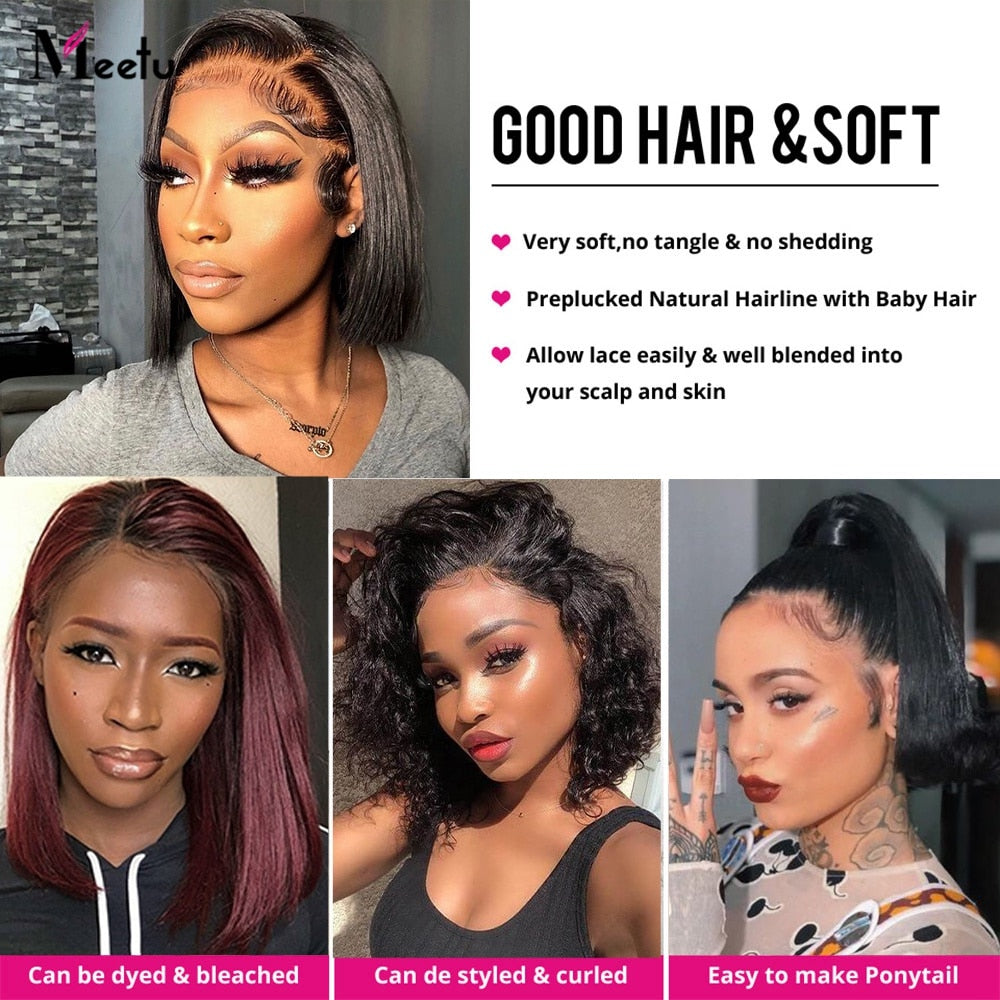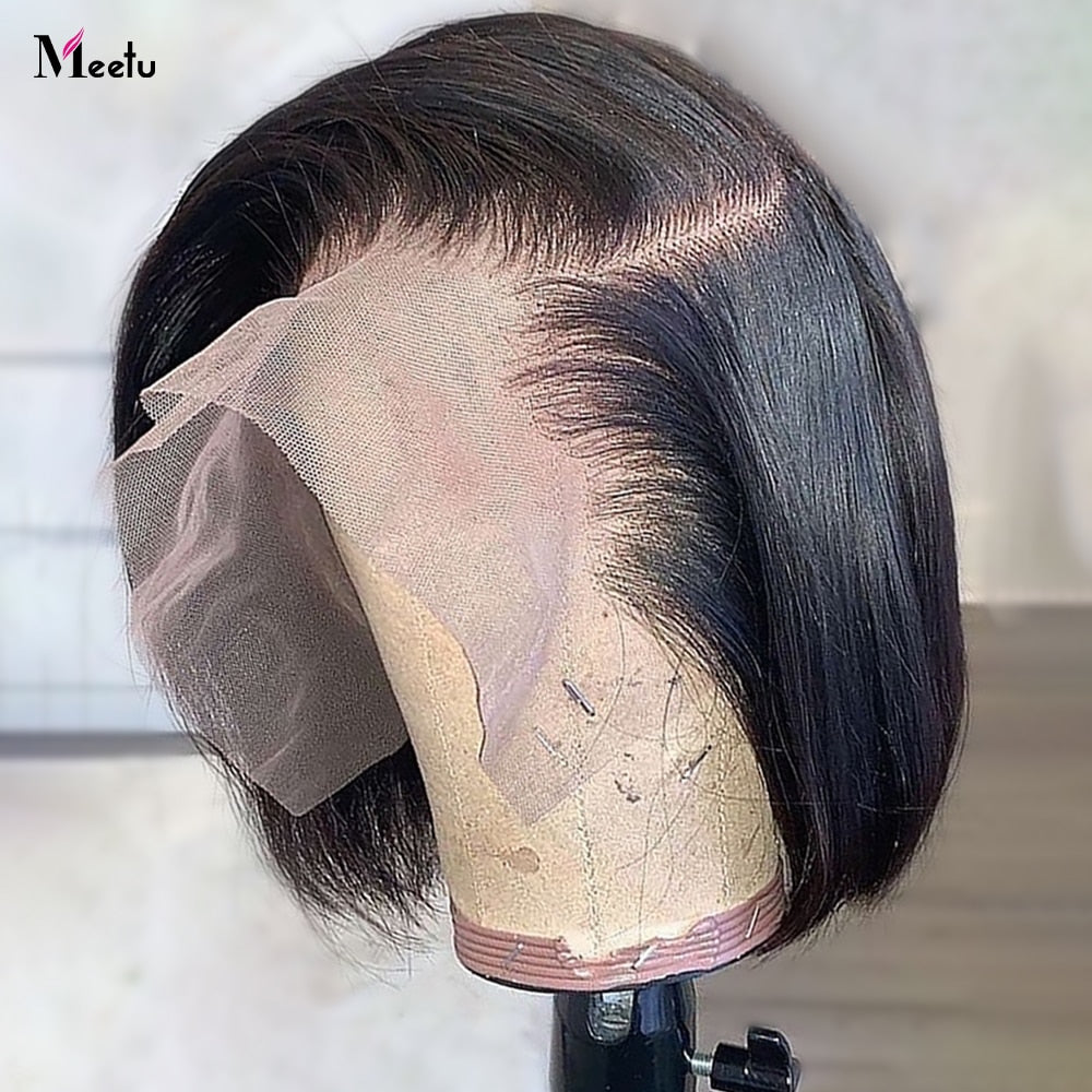 Meetu Bob Wig Lace Front Human Hair Straight Short Bob Wig Highlight Color Cheap Human Hair Wigs Transparent Lace Closure Wig