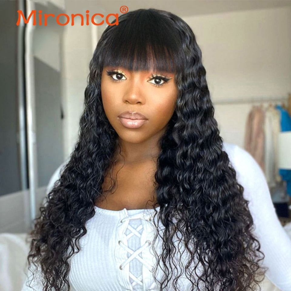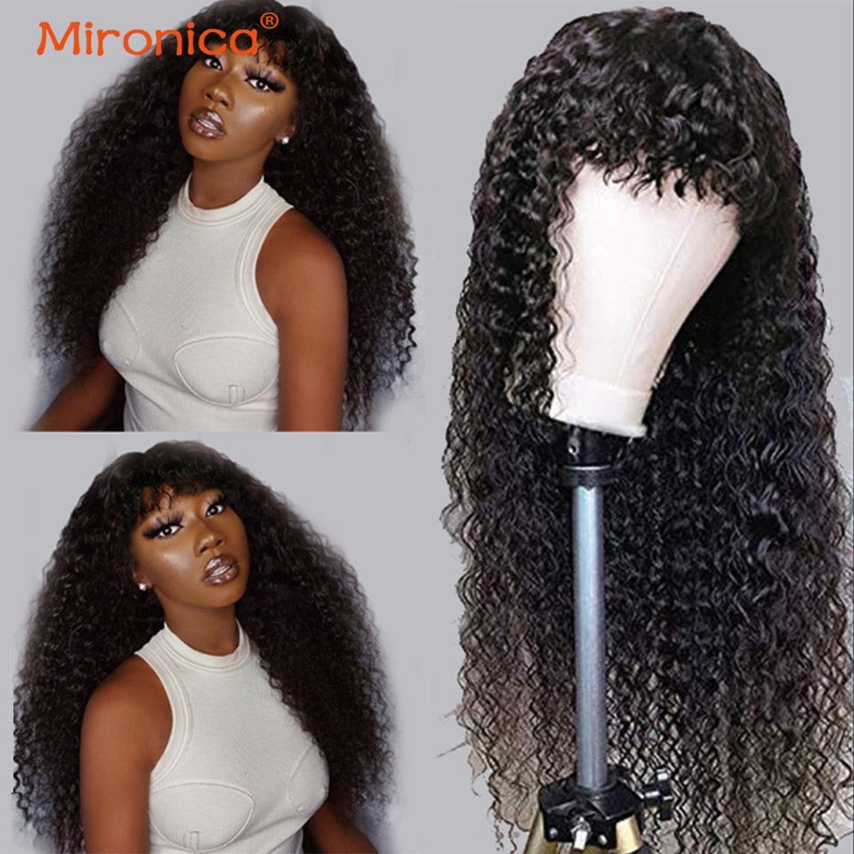 MIRONICA Malaysian Kinky Curly Human Hair Wigs With Bangs 99j #4 T1b/30 Ombre Full Machine Made Human Hair Wigs For Black Woman