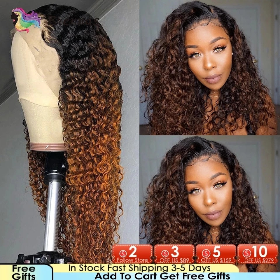 Ombre Curly Lace Front Human Hair Wigs For Women Bleached Knots Density180 Preplucked 13x4 Brazilian Hair Curly Lace Frontal Wig