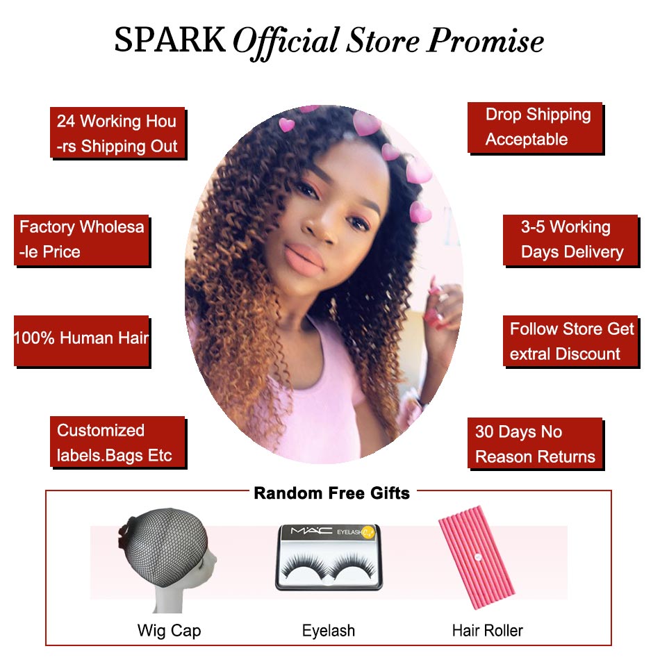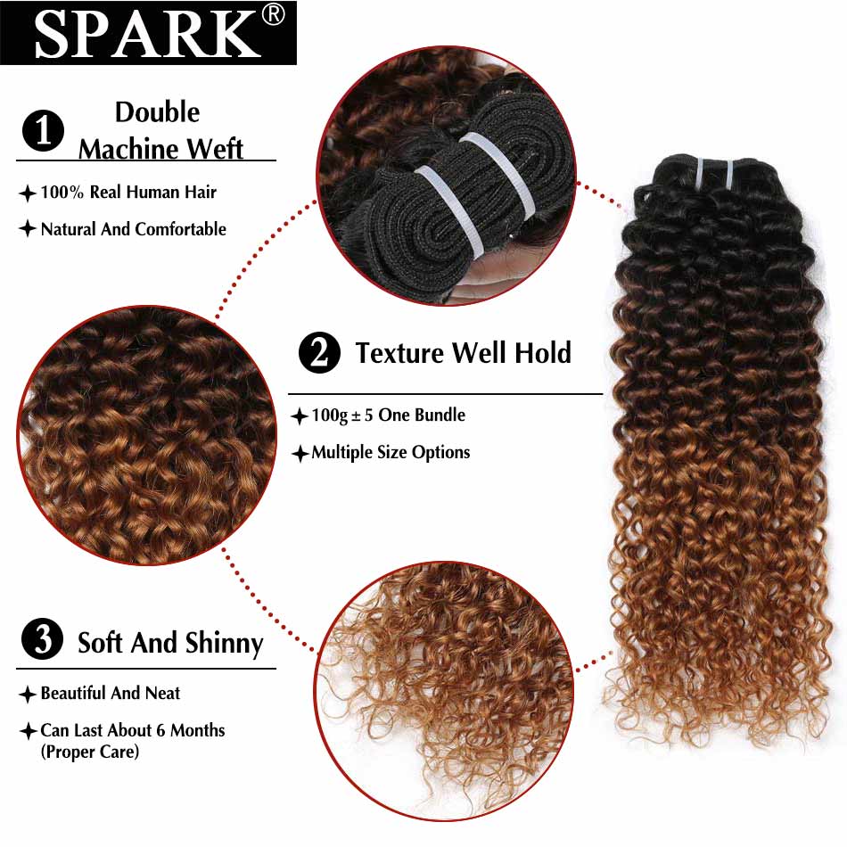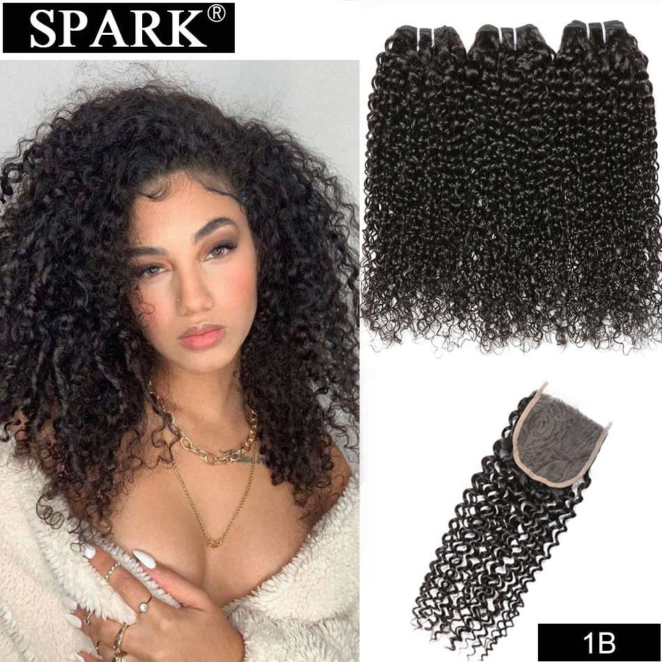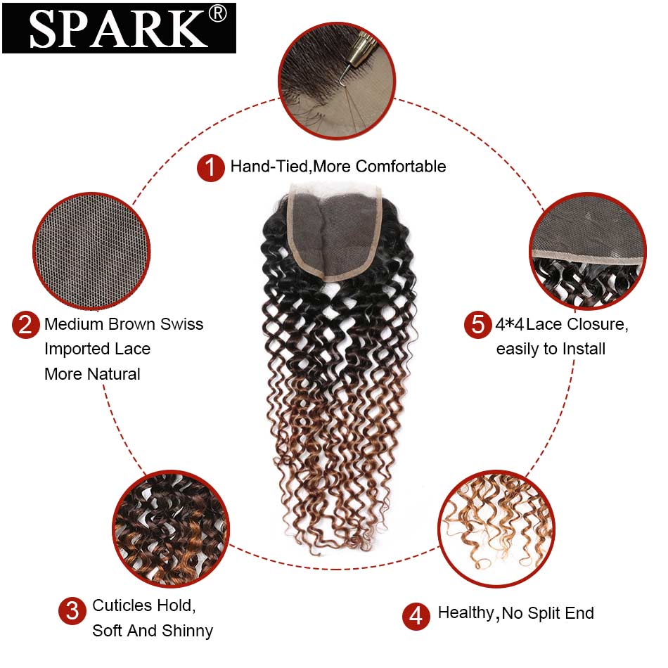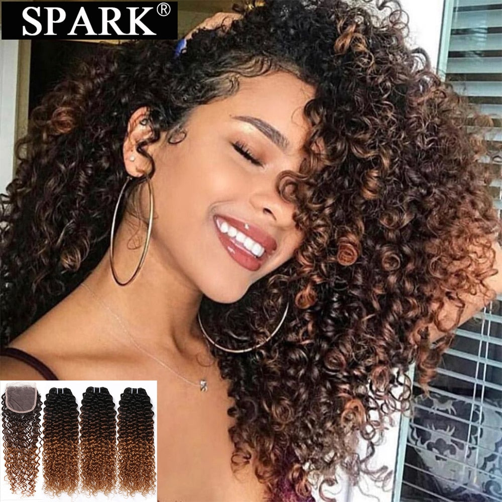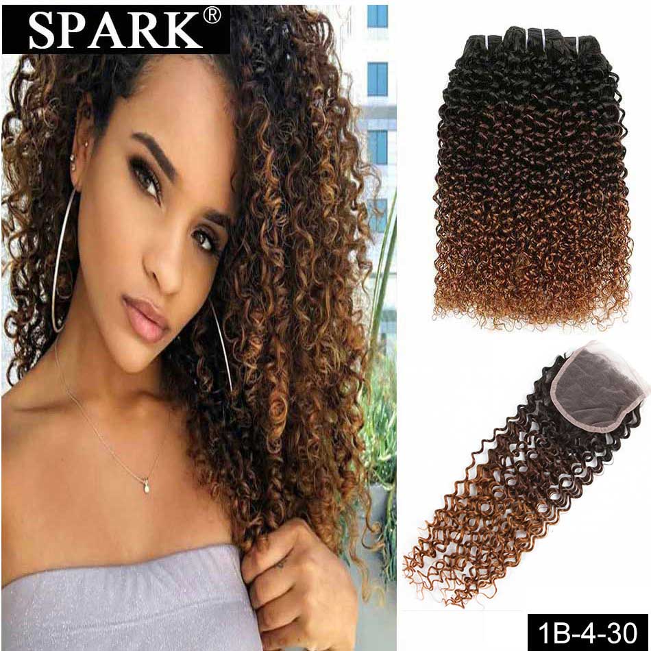 Ombre SPARK Brazilian Human Hair Weave Bundles With Closure Afro Kinky Curly Hair With Closure Remy Human Hair Extensions Black