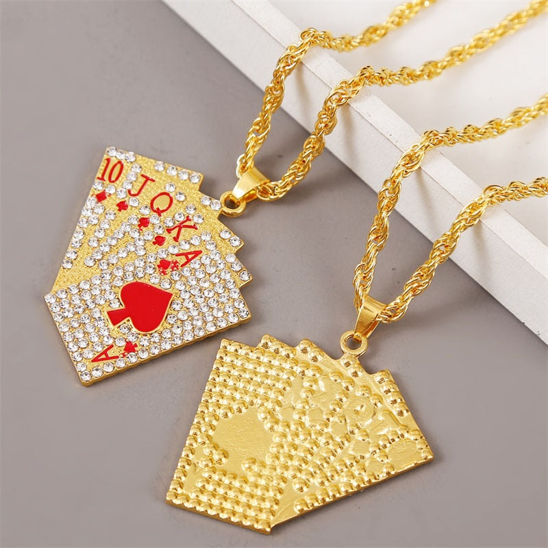 Looking for a fun and unique piece of jewelry to add to your collection? Check out our Playing Cards Pendants Necklaces! Made with real playing cards, these necklaces are both stylish and playful. Wear them as a conversation starter at your next poker night, or simply as a fashion statement. With so many different card designs to choose from, you're sure to find the perfect one to suit your personality. So why not take a chance on our Playing Cards Pendants Necklaces today? You might just get lucky!