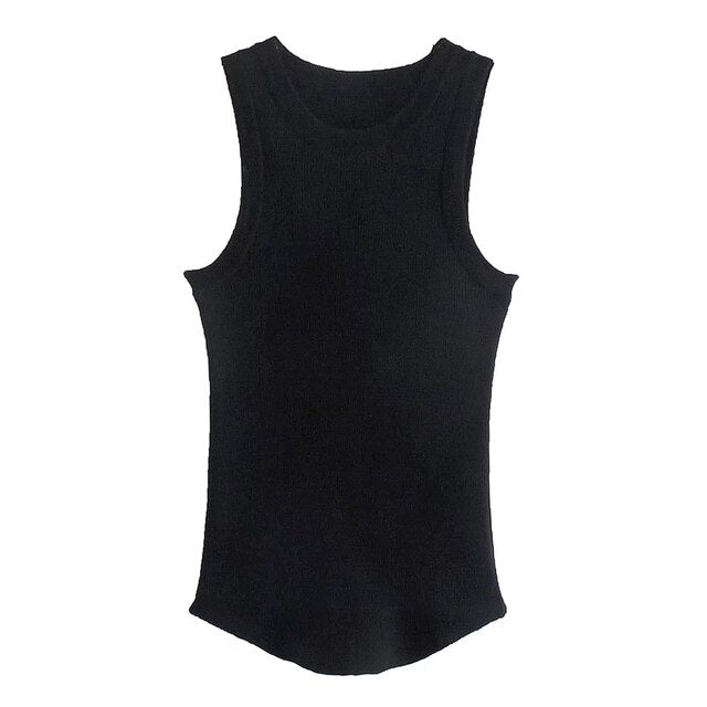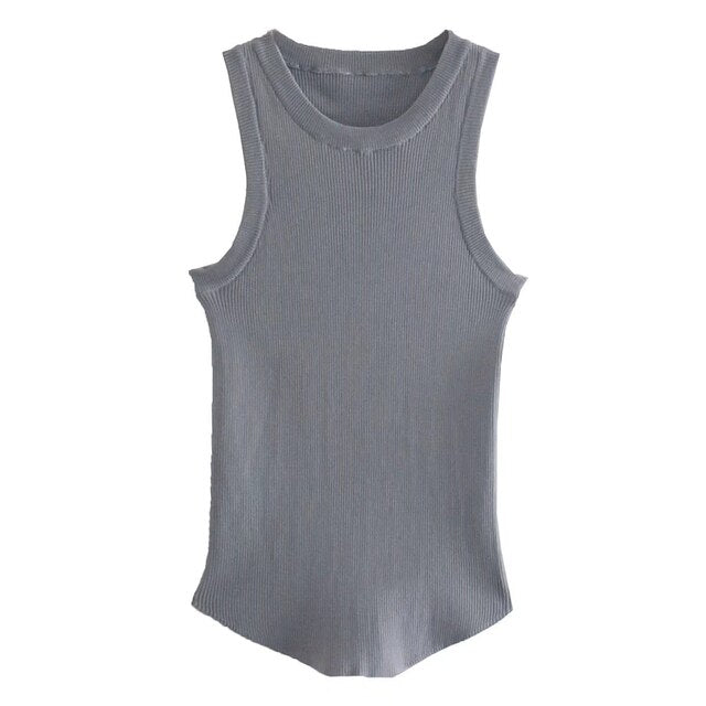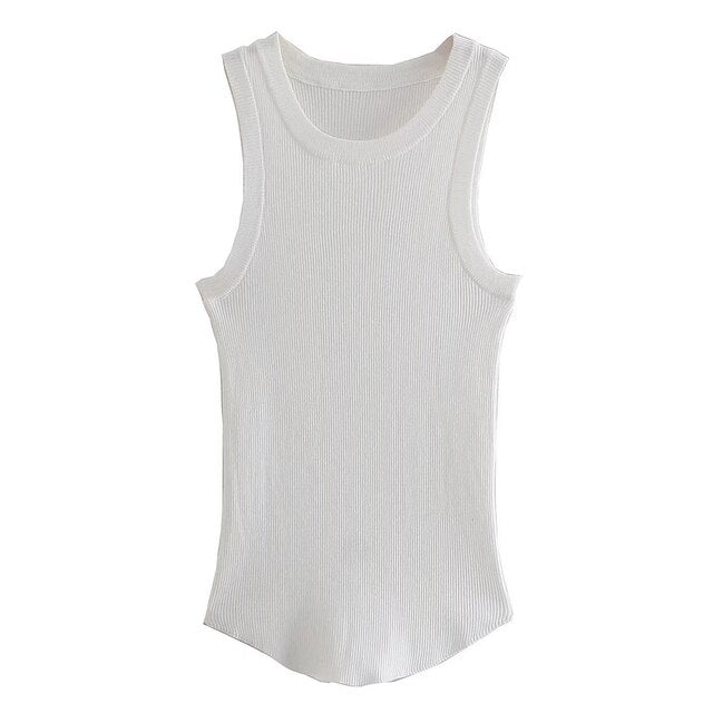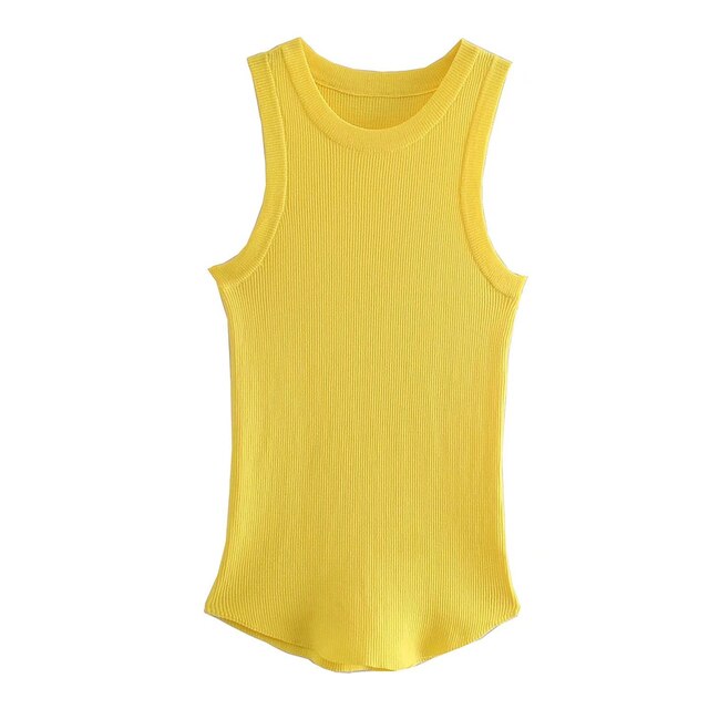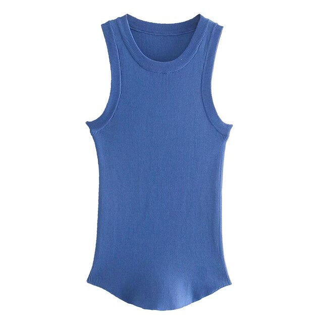 Flaunt your style in this vintage-inspired ribbed knit tank top. It's made from a soft and stretchy material that will hug your curves in all the right places. The fitted silhouette is accented by a feminine O-neck and sleeveless cut. Perfect for layering or wearing on its own, this tank top will become a staple in your wardrobe. Dress it up with a blazer for a chic work look or wear it with jeans for a casual weekend outfit.