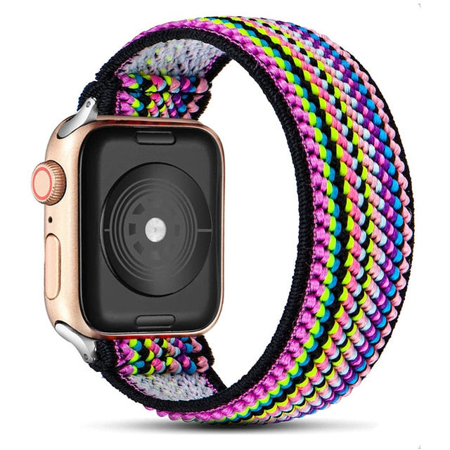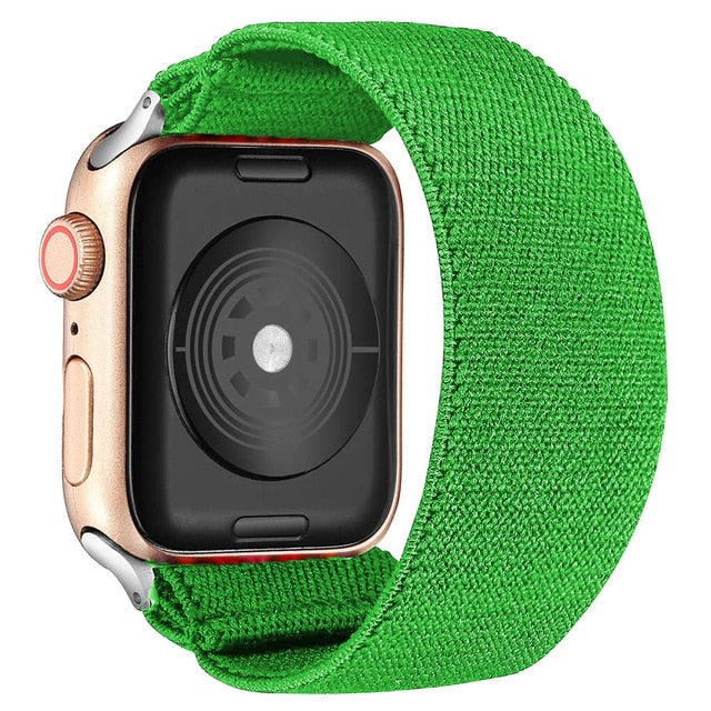 (EASY INSTALLATION: Elastic Apple watch band is designed with double button insurance of folding clasp on both sides. It comes with refined steel connectors, easy to take off and install, which lock your watch precisely and securely. Package Contains: 1x watch band (not including the apple watch)