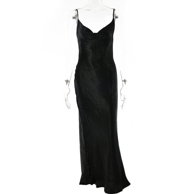 Looking for a show-stopping summer dress? Look no further than our Sexy Spaghetti Dress! This figure-hugging trumpet dress is made from luxurious satin fabric and features a lace-up back detail that is sure to turn heads. The spaghetti straps keep the dress in place while the backless design adds a touch of sexiness. The long length makes this an elegant choice for any special occasion, while the bodycon fit ensures you'll look fabulous from every angle. Whether you're hitting the town or attending a wedding, our Sexy Spaghetti Dress is sure to make you feel confident and beautiful.