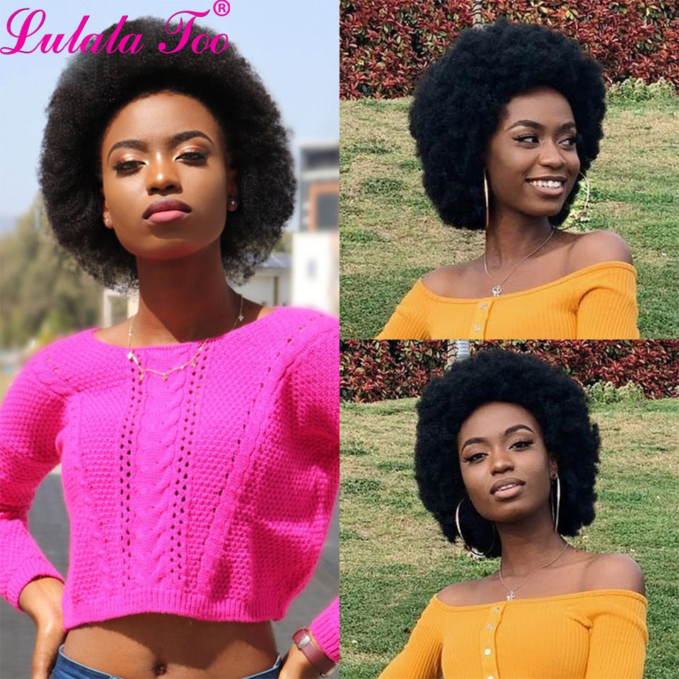Short Afro Wig Brazilian Human Hair Wigs for Woman Remy Glueless Afro Kinky Curly Wig 150% Density Natural Color Remy Yepei Hair
