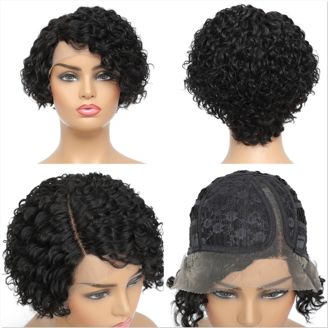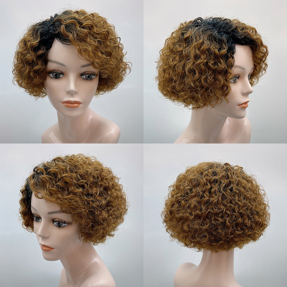 Short Kinky Curly Human Hair Wig Afro Short Wigs Pixie Cut Wig Human Hair No Lace Front Natural Brazilian Hair Wigs For Women
