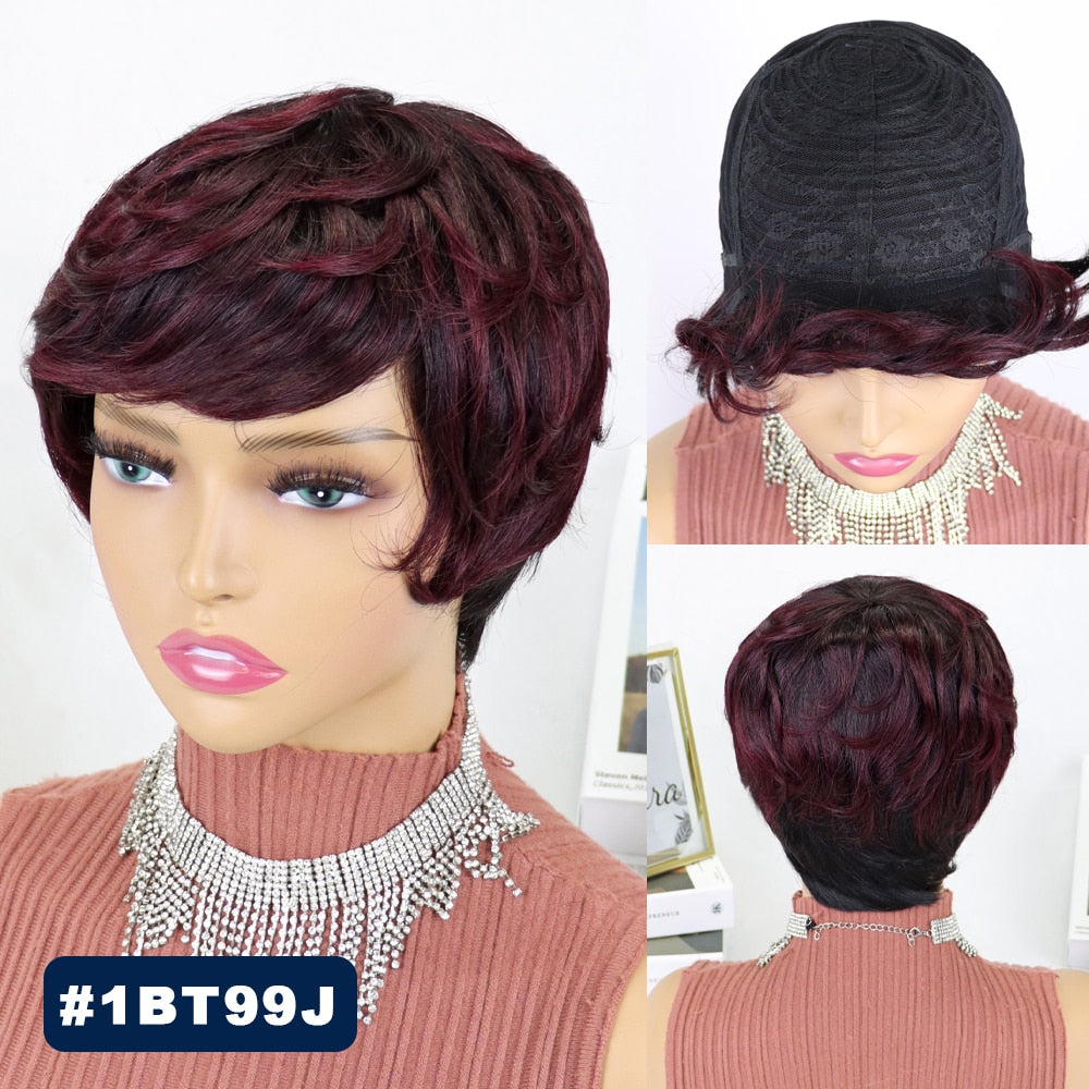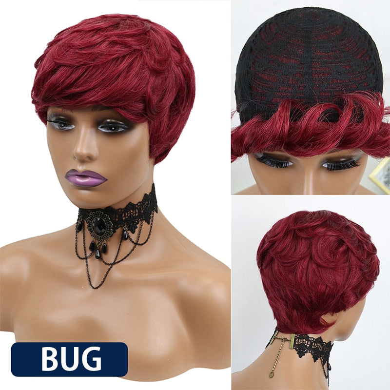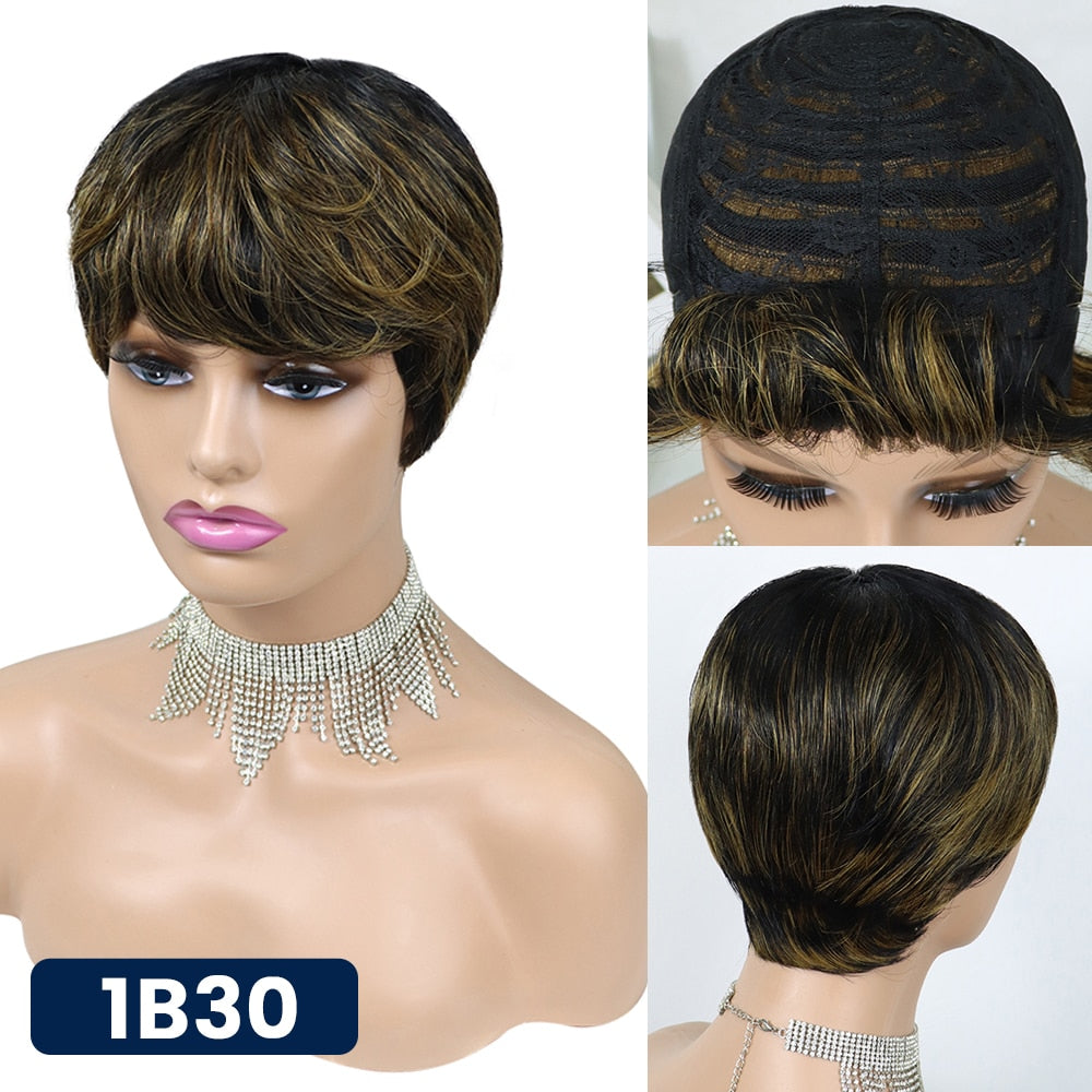 Short Pixie Cut Straight Hair Wig Peruvian Human Hair Wigs For Black Women 150% Glueless Machine Made Wig Free Shipping