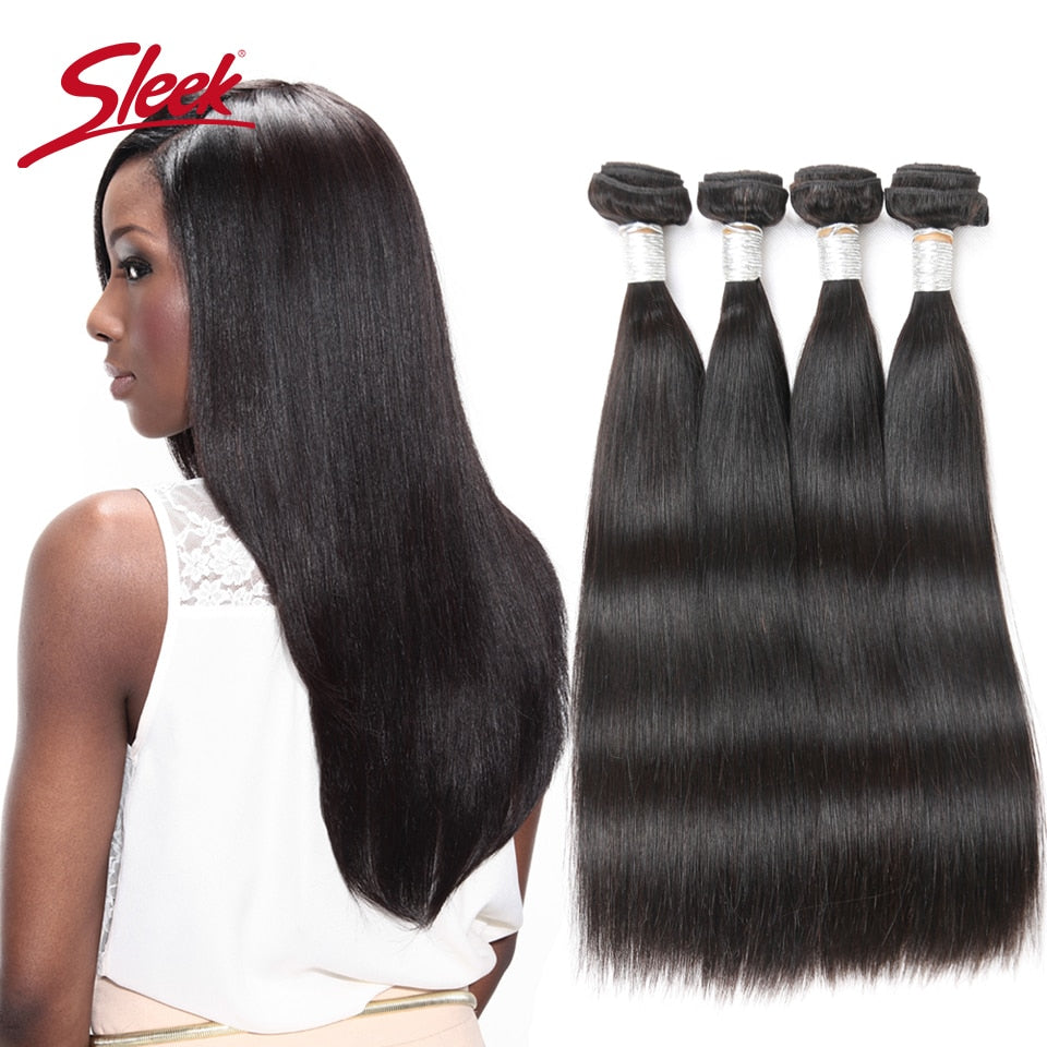 Model Number: Sleek Malaysian Brazilain Straight Human Hair Bundles With Closur