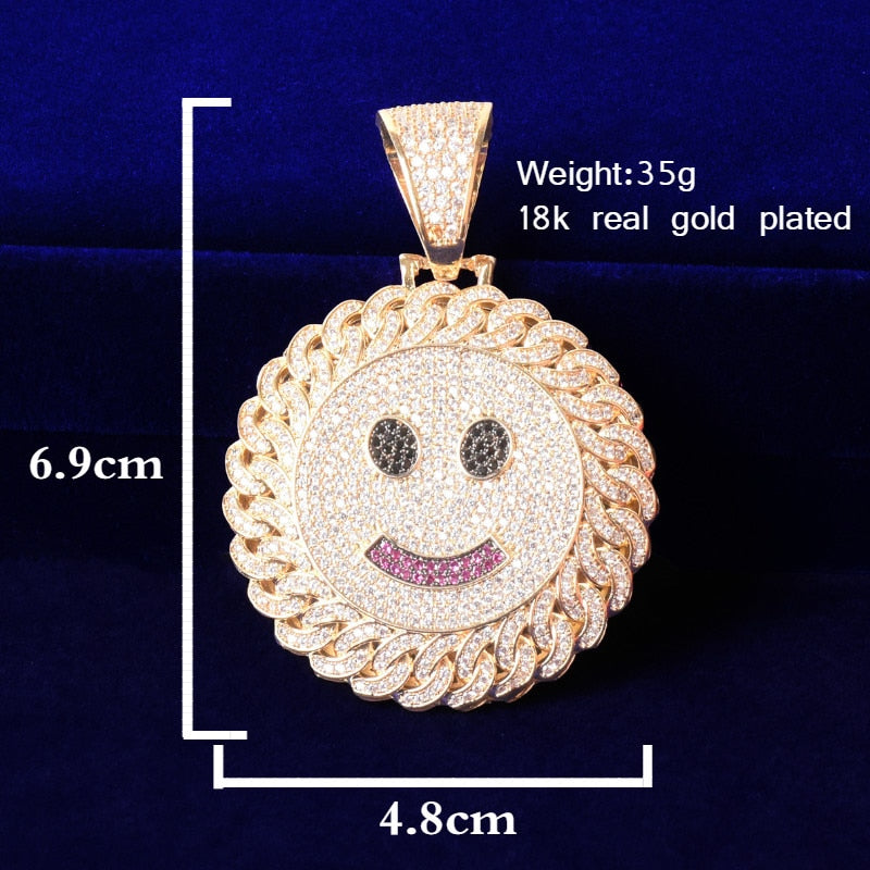 Smile Face Hip Hop Pendant Gold Color Plated Cubic Zircon Men's Necklace Rock Jewelry