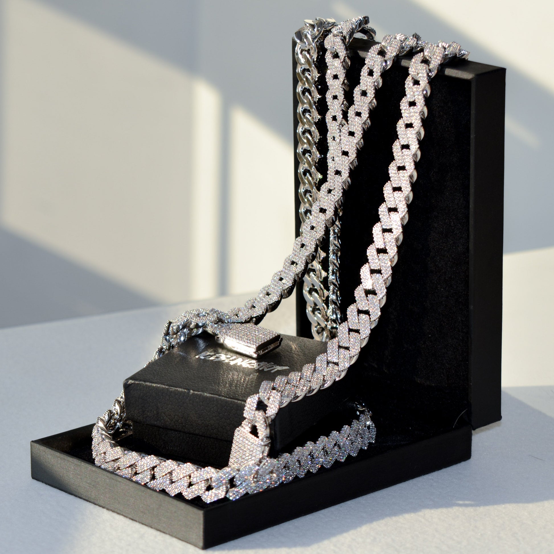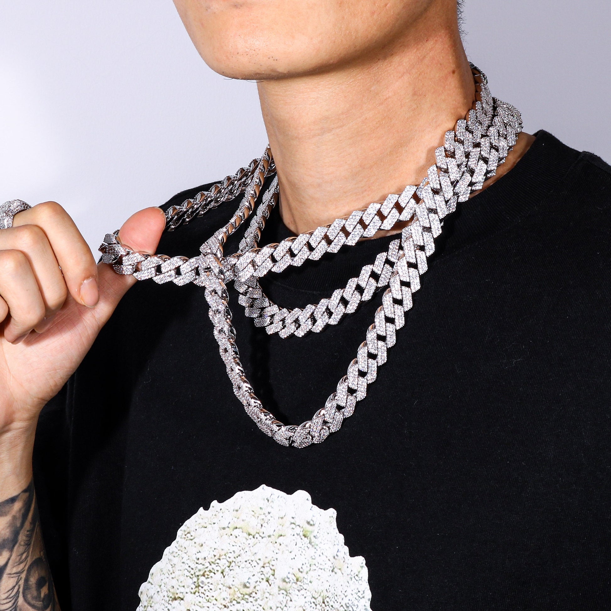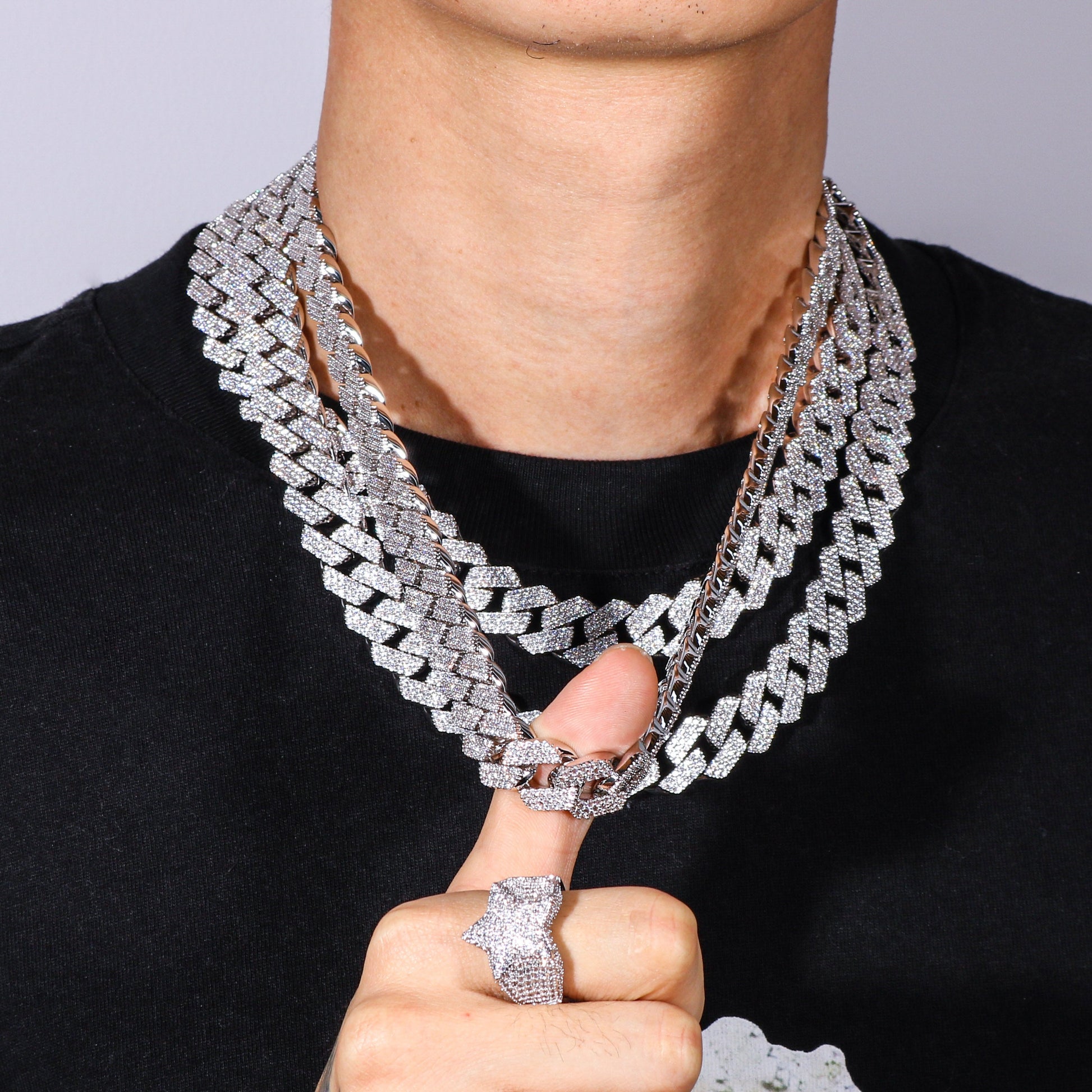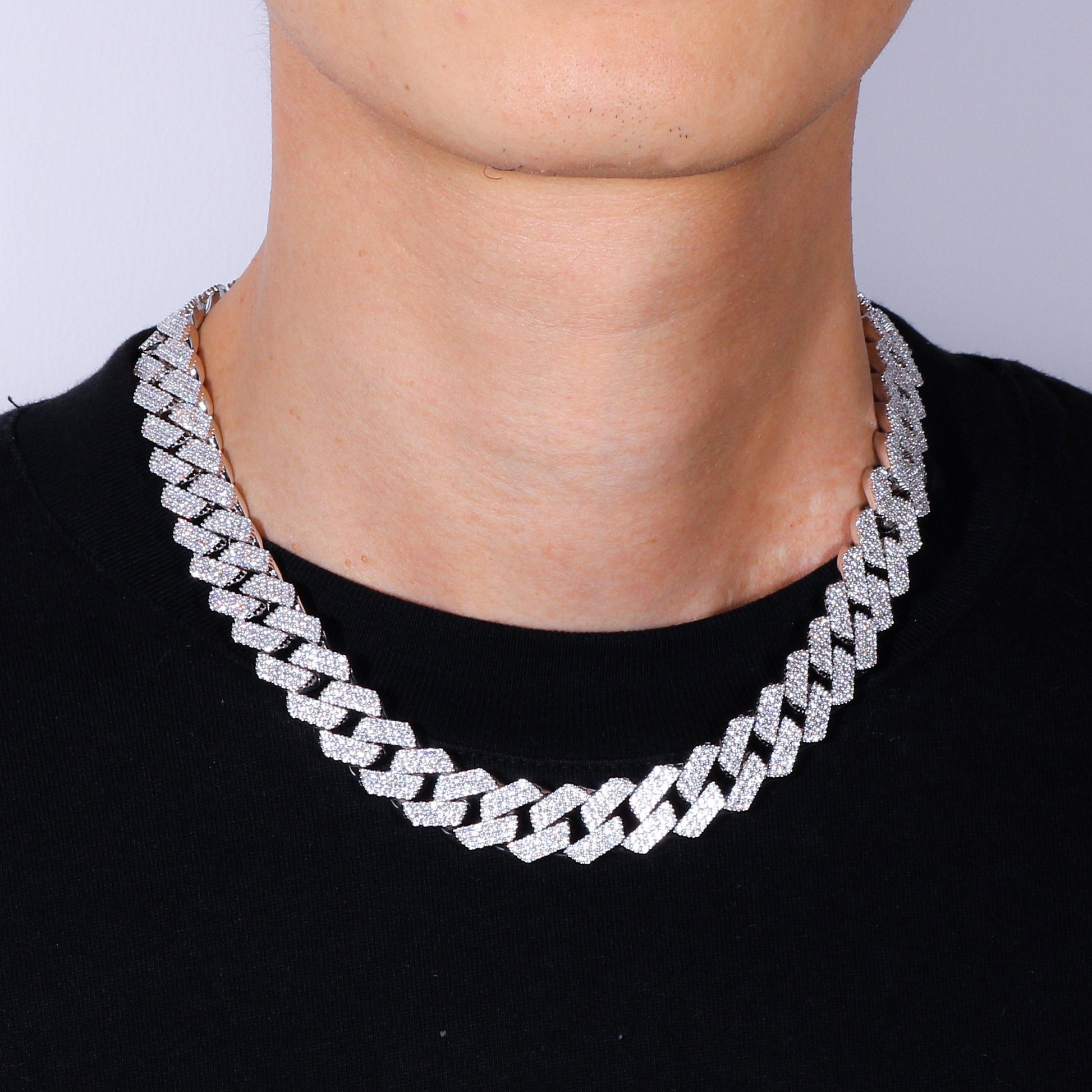 Looking for a statement piece that is sure to turn heads? Then check out our Three-Row Diamond Prong Cuban Link Chain. This jaw-dropping piece is crafted from 18K gold plated copper and features clear CZ stones in a three-row setting. The 15mm width makes it a real standout, and the buckle clasp ensures that it stays securely in place. Whether you wear it on its own or stacked with other chains, this necklace is sure to elevate any outfit.