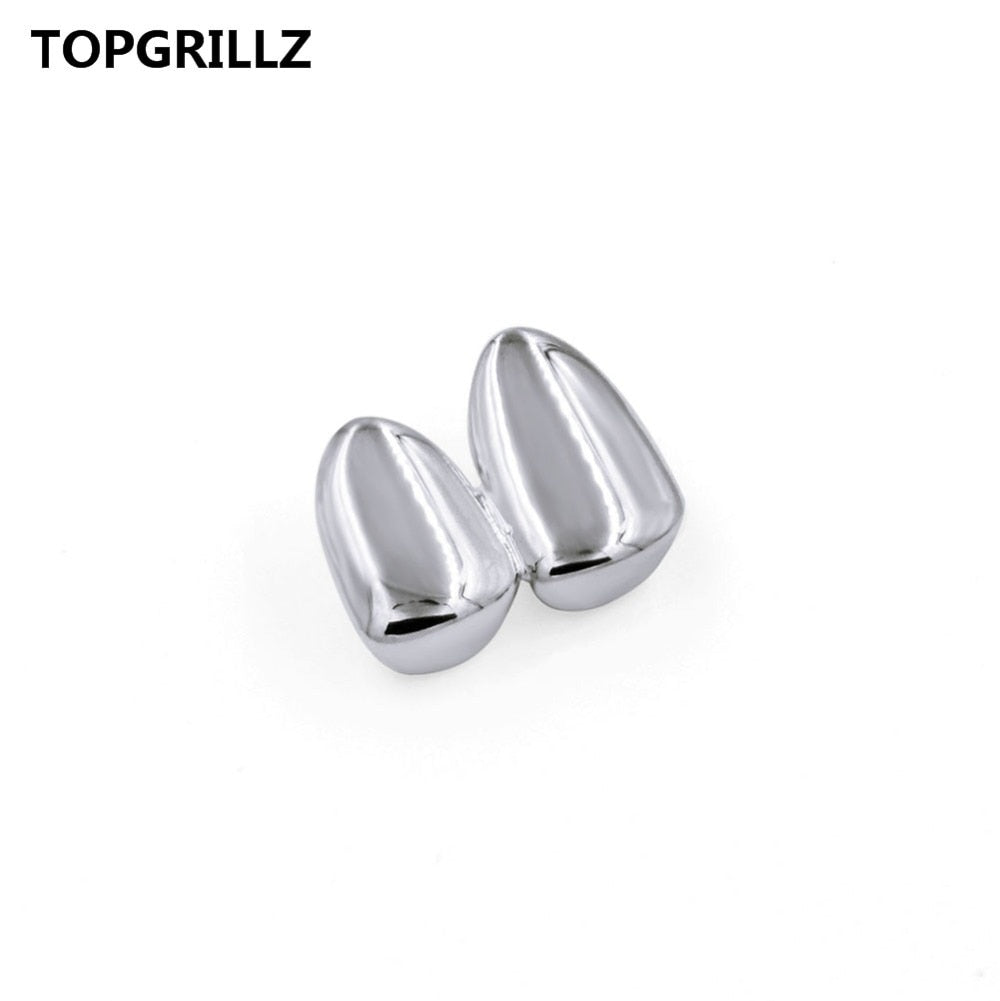 TOPGRILLZ Double Caps Yellow Gold Color Plated Grillz Canine Plain Two Teeth Right Top Single Caps Grills