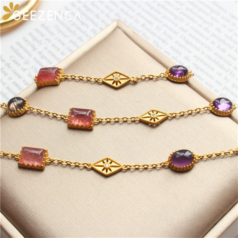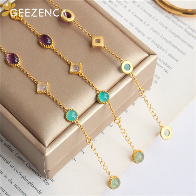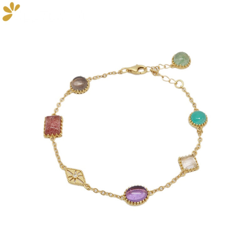 Trendy 925 Sterling Silver Naturanl Gemstone Crystal Women's Bracelet Fine Jewelry Elegant Geometric Gold-plated Bracelets Gift