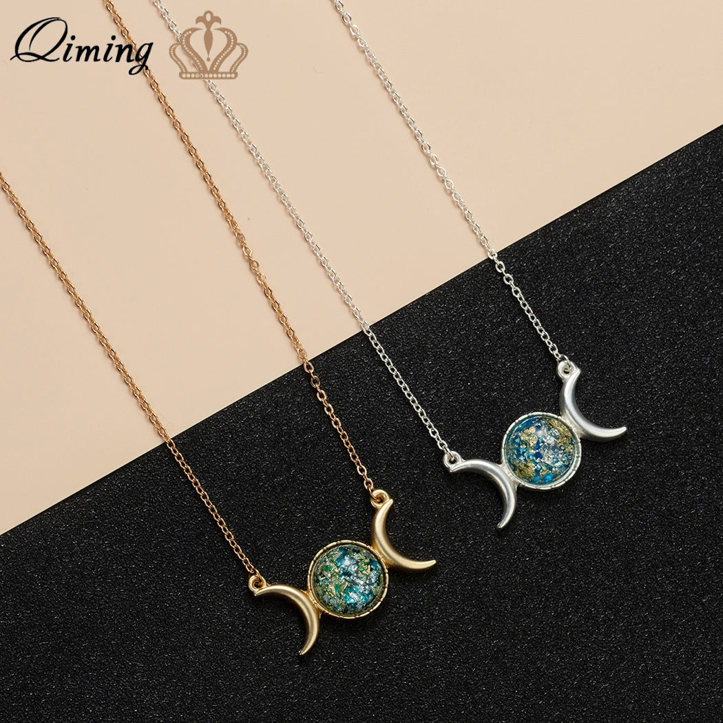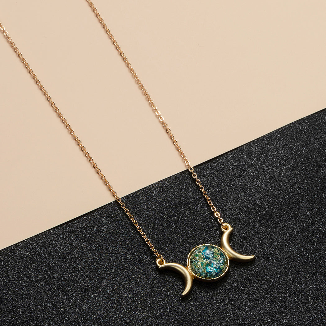 Introducing the Triple Moon Goddess Necklace! This beautiful piece is perfect for the modern woman who wants to feel connected to the earth and the celestial forces that surround us. The triple moon pendant is made from a natural crystal stone globe, and is set on a dainty yet sturdy chain. The three phases of the moon represent the goddess in her different aspects: maiden, mother, and crone. Whether you’re seeking guidance, or just want to appreciate the natural wonders of our universe, this necklace is perfect for you.