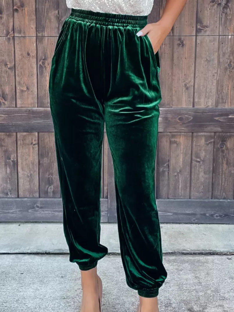 Who says you can't look fabulous and feel comfortable at the same time? Our Velvet Trousers Straight Leg Elastic Waist pants are perfect for those who want to look stylish without sacrificing comfort. Made from a soft and luxurious velvet fabric, these pants feature a straight leg cut and an elastic waistband for a comfortable and flattering fit. They're perfect for everyday wear, but can also be dressed up for a night out on the town. Whether you're running errands or meeting friends for drinks, these pants will have you feeling your best.