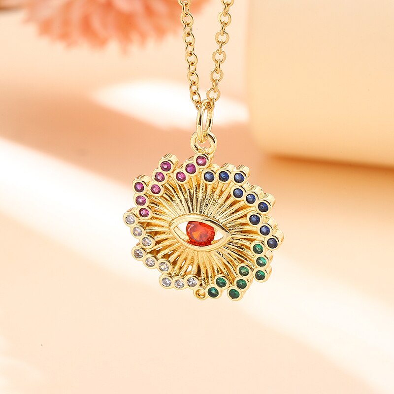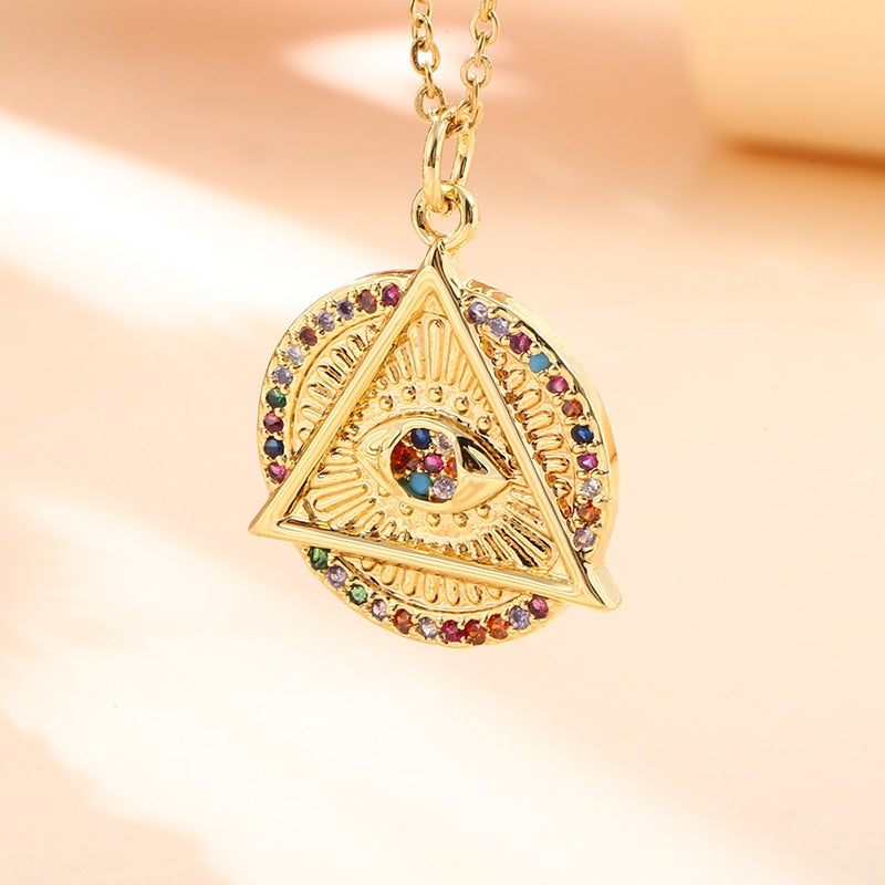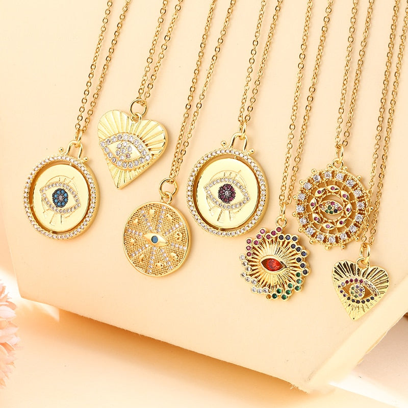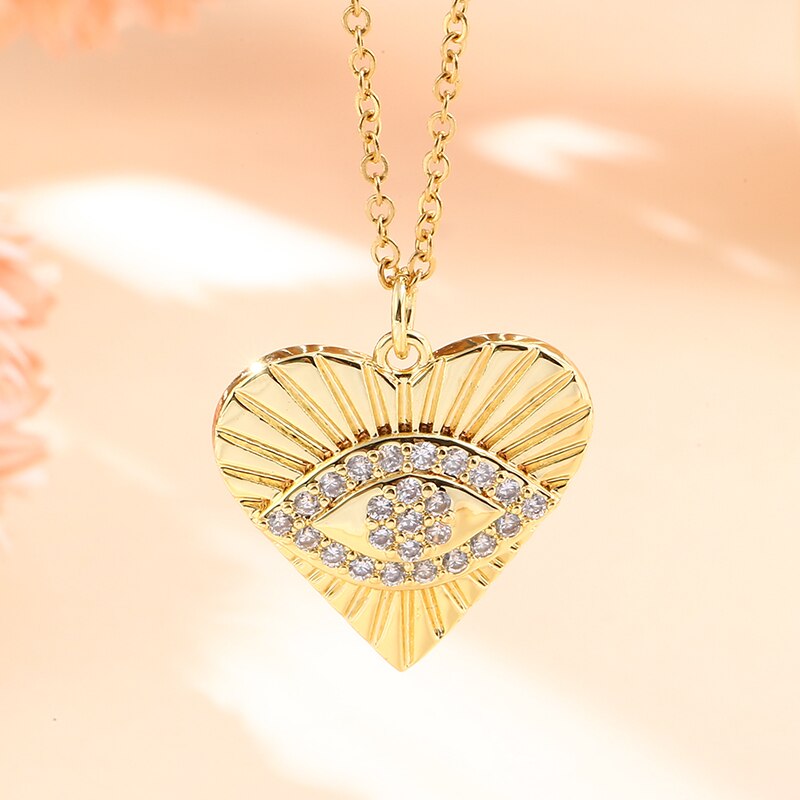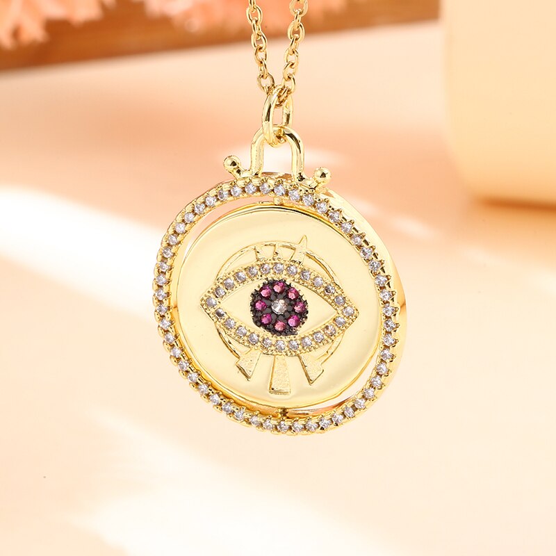 Vintage Stainless Steel Chain Copper Gold Plated Demon Eye Pendant Necklace For Women Charm Female Religious Belief Jewelry