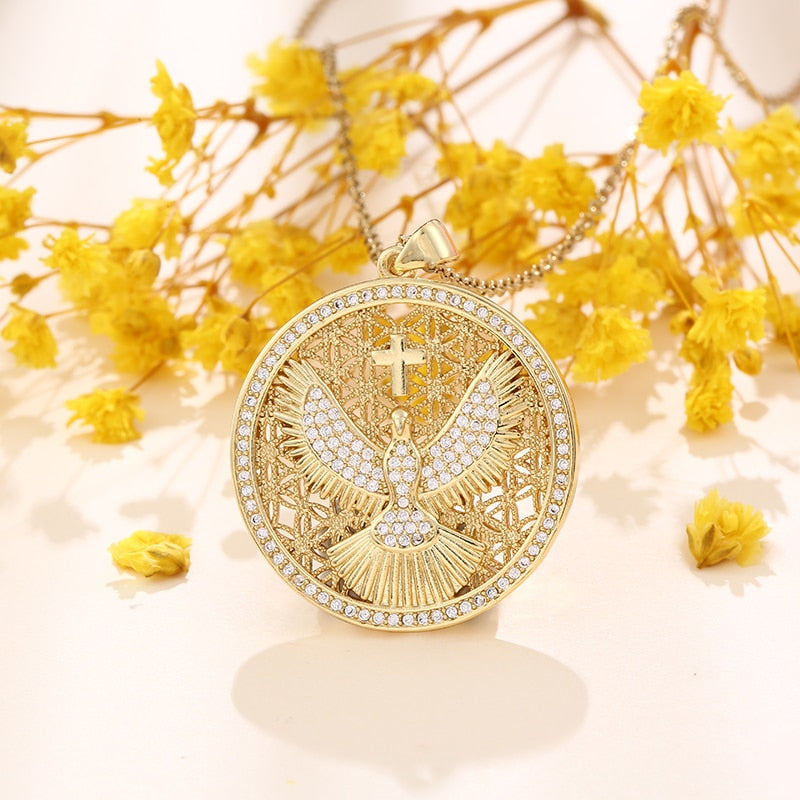 Vintage Stainless Steel Chain Gold Plated Copper Eagle Cross God Guardian Pendant Necklace Charm Female CZ Jewelry gift